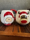 Global Design Connection Santa & Reindeer Christmas Mugs. Santa mug has small chip on bottom only visible when you turn the mug over. See photos for details. Qq-1058-6-1/25’