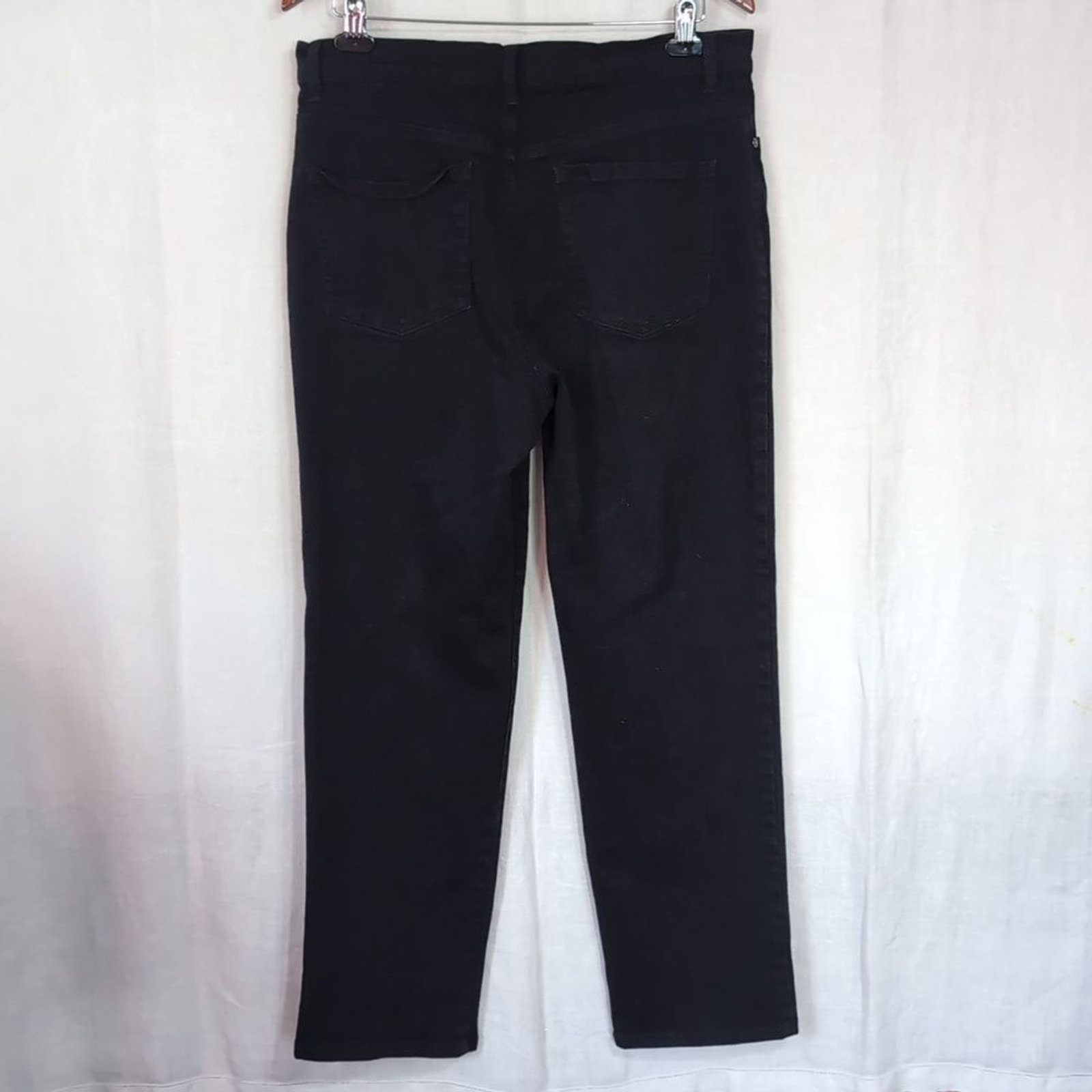 Gloria Vanderbilt size 14 Amanda style mid-high rise black denim moderate stretch straight leg like new condition measurements waist lying flat 17 rise 12 inseam 28