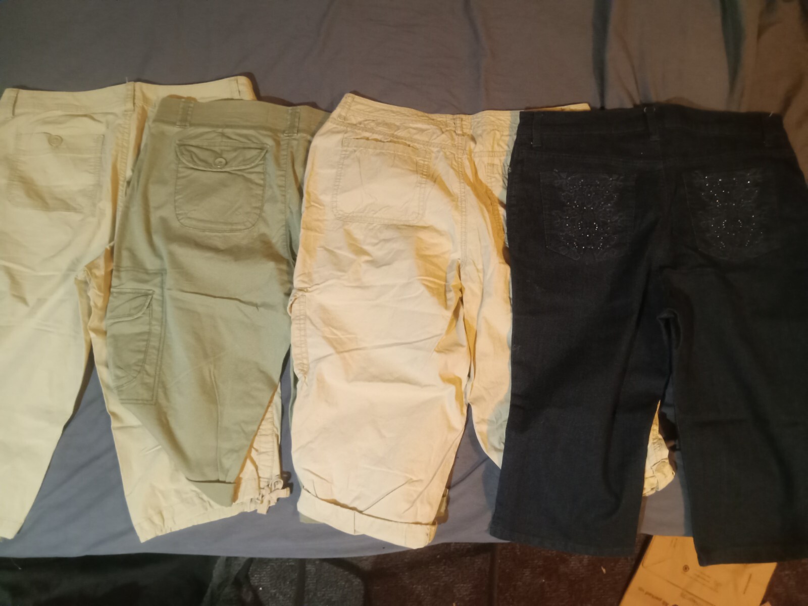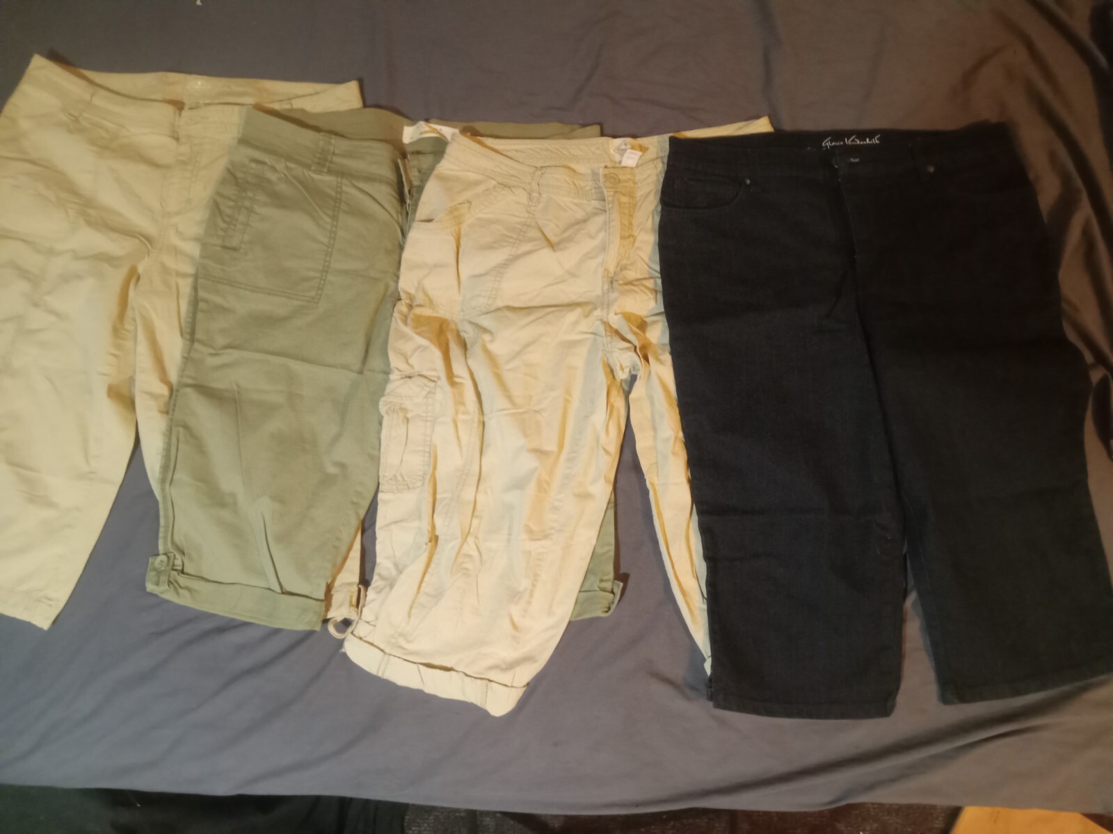 4 capris 2 pants Dive into the classic comfort and timeless style with this lot of six Gloria Vanderbilt Amanda jeans, perfect for the petite woman. Each pair is crafted to flatter with a versatile straight leg cut and a snug inseam of 26 inches, ensuring a perfect fit for your every day. The collection features a variety of multicolor options, allowing for a chic mix-and-match for any wardrobe.The jeans boast the reliable zip closure and are part of the esteemed Gloria Vanderbilt Amanda product line, known for its quality and durability. Whether you're dressing up for a casual outing or looking for a comfortable staple for your lounging days, these jeans offer the perfect blend of style and ease.