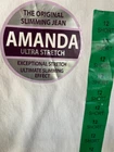 NWT Gloria Vanderbilt white cotton and spandex jeans size 12. Marked short but not sure why. Amanda style, front zip and silver metal studs. Waist about 30, rise 11, 29 inseam and hip area almost 20 across the front, all without any stretching.