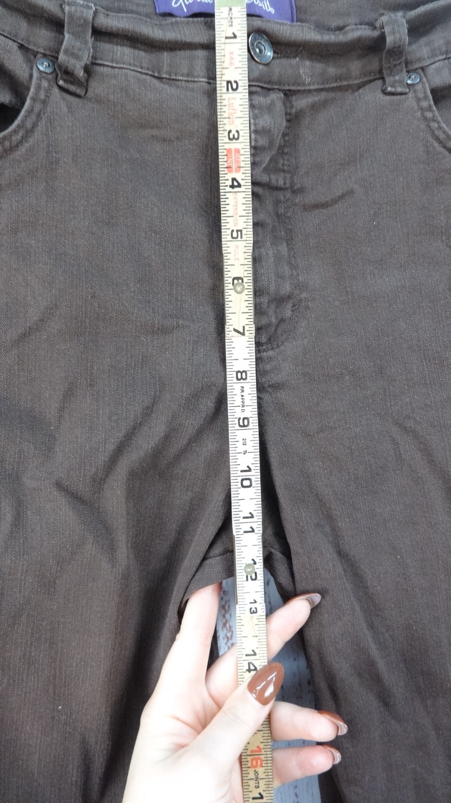 These Gloria Vanderbilt pants are perfect for women in size petite 14. The brown stretch casual pants feature a solid pattern, button closure, and flat front design. Made from a blend of polyester, rayon, and cotton twill fabric, these pants offer comfort and ease of care. Ideal for casual, workwear, or business occasions, these straight-leg ankle pants also feature pockets for added convenience. Perfect for the summer, fall, and spring seasons, these pants are a versatile addition to any wardrobe.