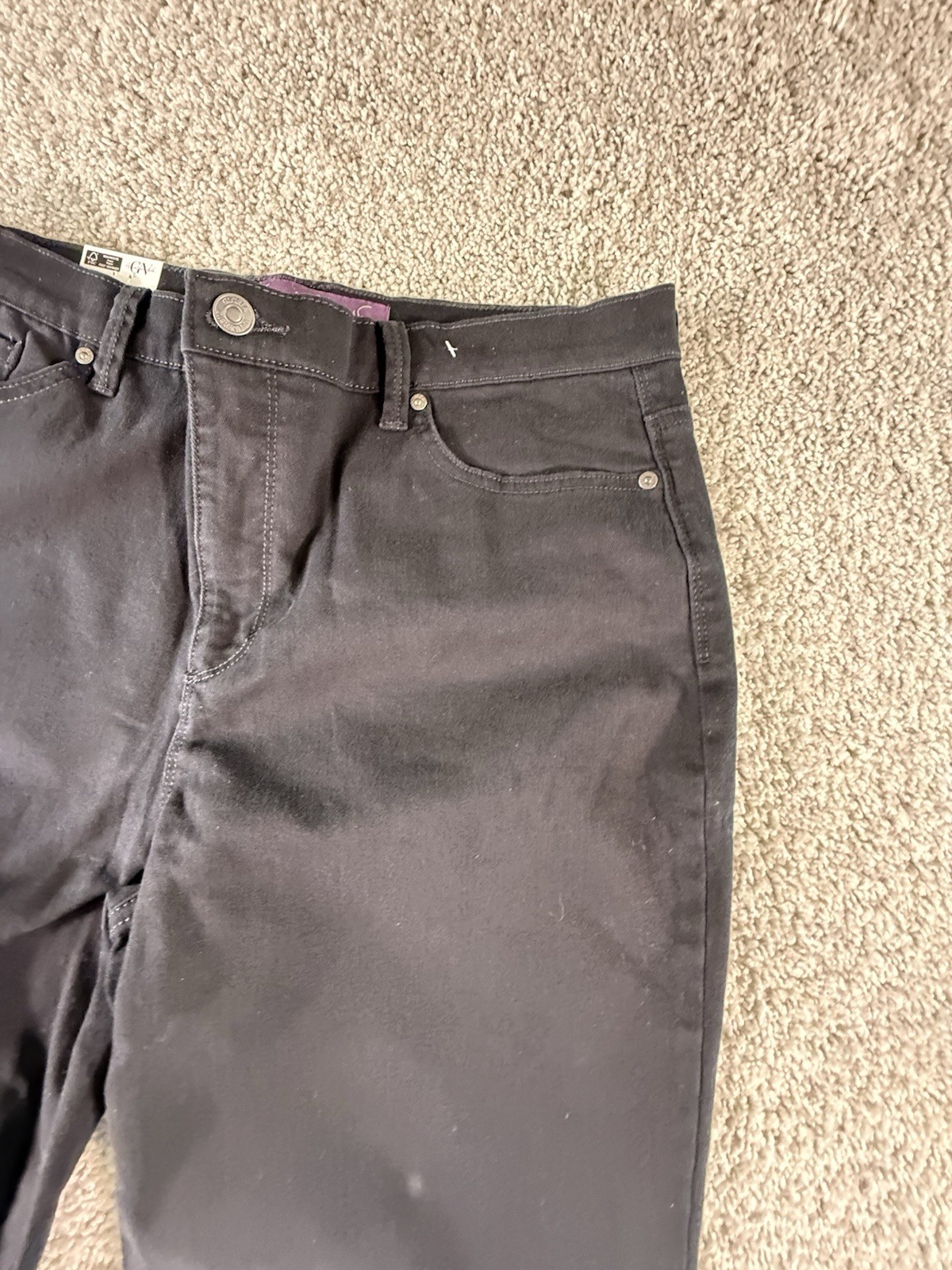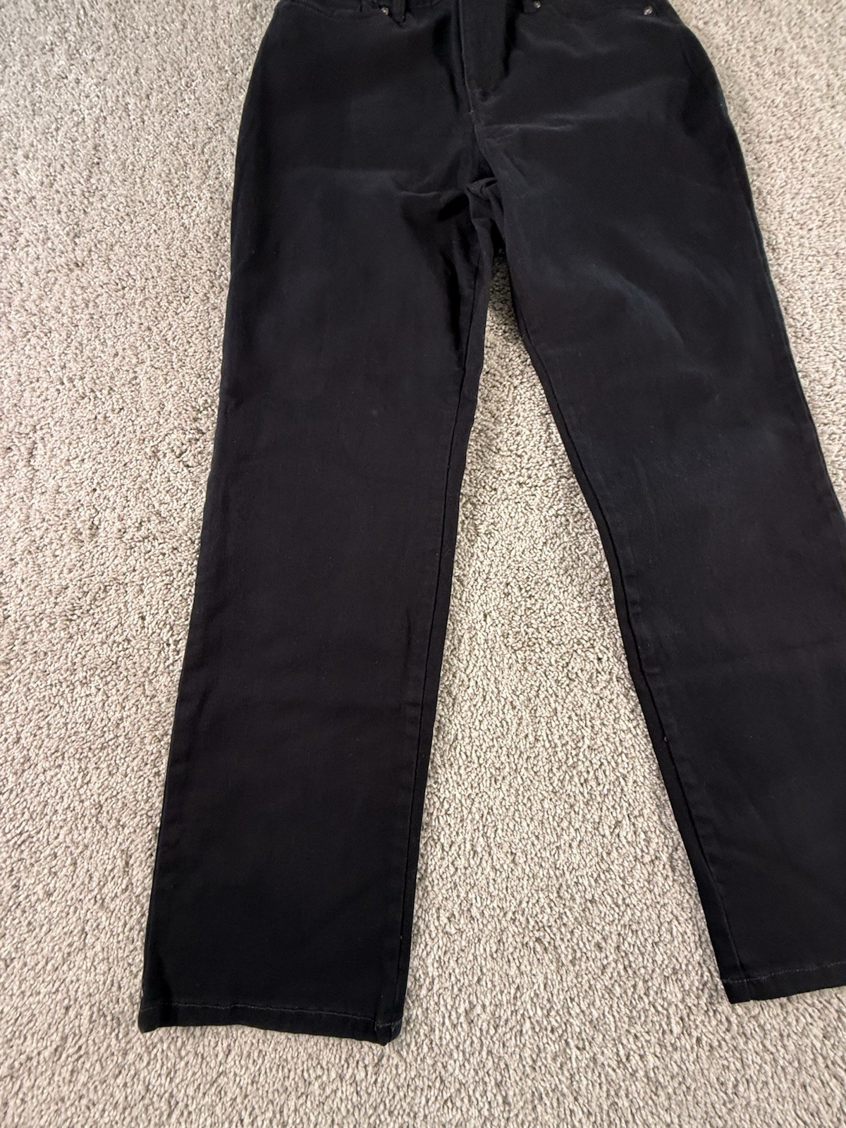 The Gloria Vanderbilt Women's Amanda Classic Tapered Jeans in Black, Size 12 Average offer a timeless and versatile style perfect for everyday wear. These high-rise denim jeans feature a classic fit, tapered leg, and a comfortable cotton blend fabric that includes stretch for added flexibility. With a zip and button closure, these machine washable jeans also come with pockets for added convenience. Perfect for a casual yet put-together look, these Gloria Vanderbilt jeans are a wardrobe staple for any woman in search of both style and comfort. 5069