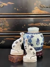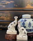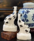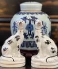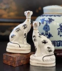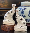 Marvelous Scarce Petite 19C Figural English Staffordshire Mantle Spaniel Mantle Hunt Dog • Black and White Spaniels on Bases • Extremely Rare • Timeless Original Antique Examples • Height 5.25” I am delighted to bring you this stunning rare 19C spaniel hunt hound mantle dog pair. A scarce gallery quality original petite English country life mantle pair in classic, rarely found model. Impressive showpiece to enjoy on its own or as part of a collection or arrangement. Beautiful form and brushwork technique to decoration, pretty pale tan snouts and glorious features. Excellent condition for age, expected age related patina. Stunning surviving original period examples to own and treasure. Display ready.