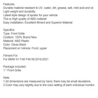 SAFE & SECURE SHOPPING 100% SATISFACTION GUARANTEED FAST SHIPPING Store Categories Store Categories Other eBay Motors Honda Toyota Ford Chevrolet Audi Mercedes-Benz Dodge Jeep You may also like RV Awning Power Motor Torsion Assembly Fit Dometic 9100 3310423.209B Rh P1 302.69 USD Free shipping Gloss Black Wing Door Mirror Cover Caps Left+Right For VW T6 Transporter 15-19 97.99 USD Free shipping 1× Front Bumper Grille For 15-19 Mercedes-Benz GLC Class W253 X253 GLC300 GLC350 118.68 USD Free shipping Gloss Black Wing Door Mirror Cover Caps Left + Right for VW Jetta 2005-2011 51.0 USD Free shipping Blind Spot Monitor Sensor Module JC3T-14C689-AA For Ford F150 F250 Super Duty 148.69 USD Free shipping 4PCS Fuel Injector Seal O-Ring Kit fit Honda Accord CRX Civic DelSol Prelude 41.69 USD Free shipping Gloss Black Front Kidney Grille Grill Fit BMW X1 F48 F49 2019-2021 Dual Slat Product Description Features: Durable material resistant to UV, water, dirt, grease, salt, mild acid and oil Light weight and durability Latest style design of spoiler for your vehicle This is High quality of ABS material Easy installation, Excellent fitment and Superior Material Specifics: Type: Front Grille Codition: 100% Brand New Material: ABS Plastic Color: Gloss Black Placement on Vehicle: Front, upper Fitment For: For BMW X1 F48 F49 09.2019-2021 Package Included: 1 * Front Grille Note: 1.All dimensions are measured by hand, there may be small deviations. 2.Color may vary slightly due to the color setting of each individual monitor. About Us Shipping Terms Returns Contact Us About Us VIPIH is one of the international leading distributors specialized in distribution of auto spare parts of the world’s prime auto part suppliers on a global scale with the full responsibility in procurement, shipping, sales and marketing and after sales service. VIPIH fulfills all needs of its clients completely and on a timely basis with the know-how it has built up since it was established and the comprehension knowledge of the sectors standards. The perfectionist approach in product quality, high service availability, strict principle of business follow-up, reliability and the good reputation which has gained strength as a result of customer satisfaction are the most striking components of VIPIH ’ s success. VIPIH is presently capable of supplying all demands for auto parts from the gear box to turbo hoses in a wide range. Free delivery with worldwide shipping options available. If can not locate what you need then please get in touch! Shipping Shipping Terms International Buyers – Please Note: 1. Import duties, taxes and charges are not included in the item price or shipping charges. These charges are the buyer’s responsibility. 2. Please check with your country’s customs office to determine what these additional costs will be prior to bidding/buying. 3.Buyers' Information: We strive our best to provide you the most reliable, affordable way of shipping service. But sometimes international delivery is highly depended on the courier company and local customs/duties. If you do not receive your item on time, please sent us ebay message immediately for further assistance. Thank you for your understanding. Terms We stand behind everything that we sell and will do everything possible to assure you are satisfied. When you receive your purchase if you are not 100% satisfied, please sent me ebay message and we will do our best to make you happy. If you still want to return your purchase, simply ship the item(s) back to us and we will refund your original purchase price and the original shipping charge. Buyers are responsible for the postal cost of returning the items. We must be notified of the intent to return your item within 30 days of receiving the item. Items returned must be in the same condition that they were received. How to return 1,Please ask us for return address . 2,Shipping back the package . The RMA#(Return Merchant Authorization Number = Your ebay ID) must be clearly written on the return package ,Otherwise the package will be refused. 3,Sent us the return tracking number. 4,All returns will be inspected prior to a credit being issued. Returns 1:Returns are accepted within 60 days of purchase. 2:All returned items MUST BE in the original packaging. 3:We will be happy to assist you if if any item needs to be returned or replaced 4:Please don't open a return request before contacting us first to solve, many thanks. Contact Us If you have any questions, our Customer Service staffs welcome you to sent me ebay message. We strive to answer all questions and resolve any problems as quickly as possible. Business Hours: Monday-Saturday 9:00-17:00 Copyright © 2022 Tongtool