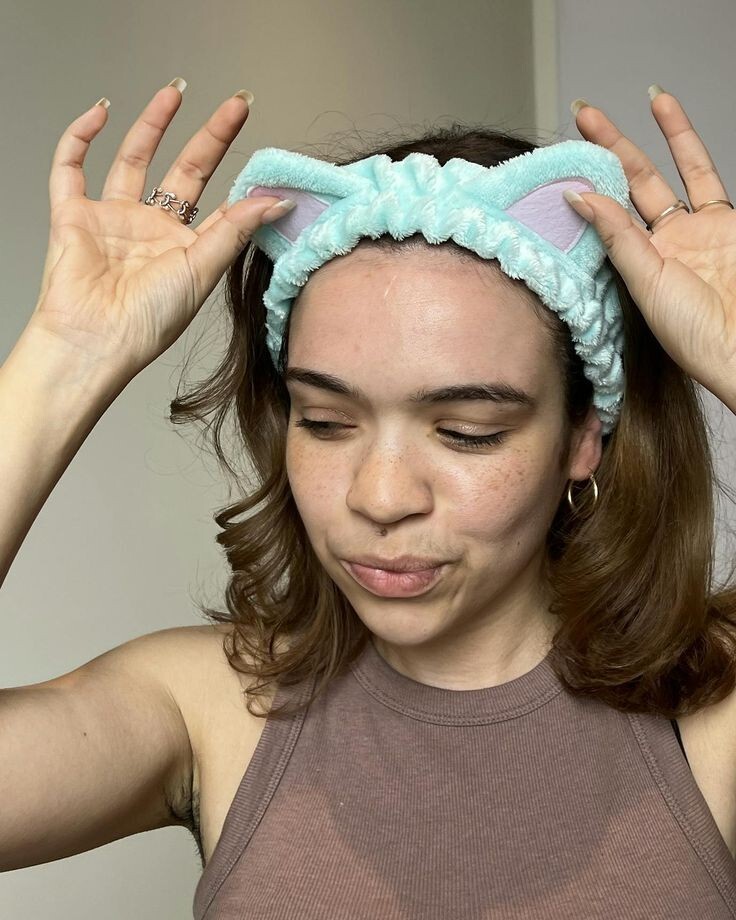 Super-soft terrycloth Glossier Kitty Spa Headband. Make washing up or putting on makeup/skincare fun with this cute hair accessory. Brand new in package.