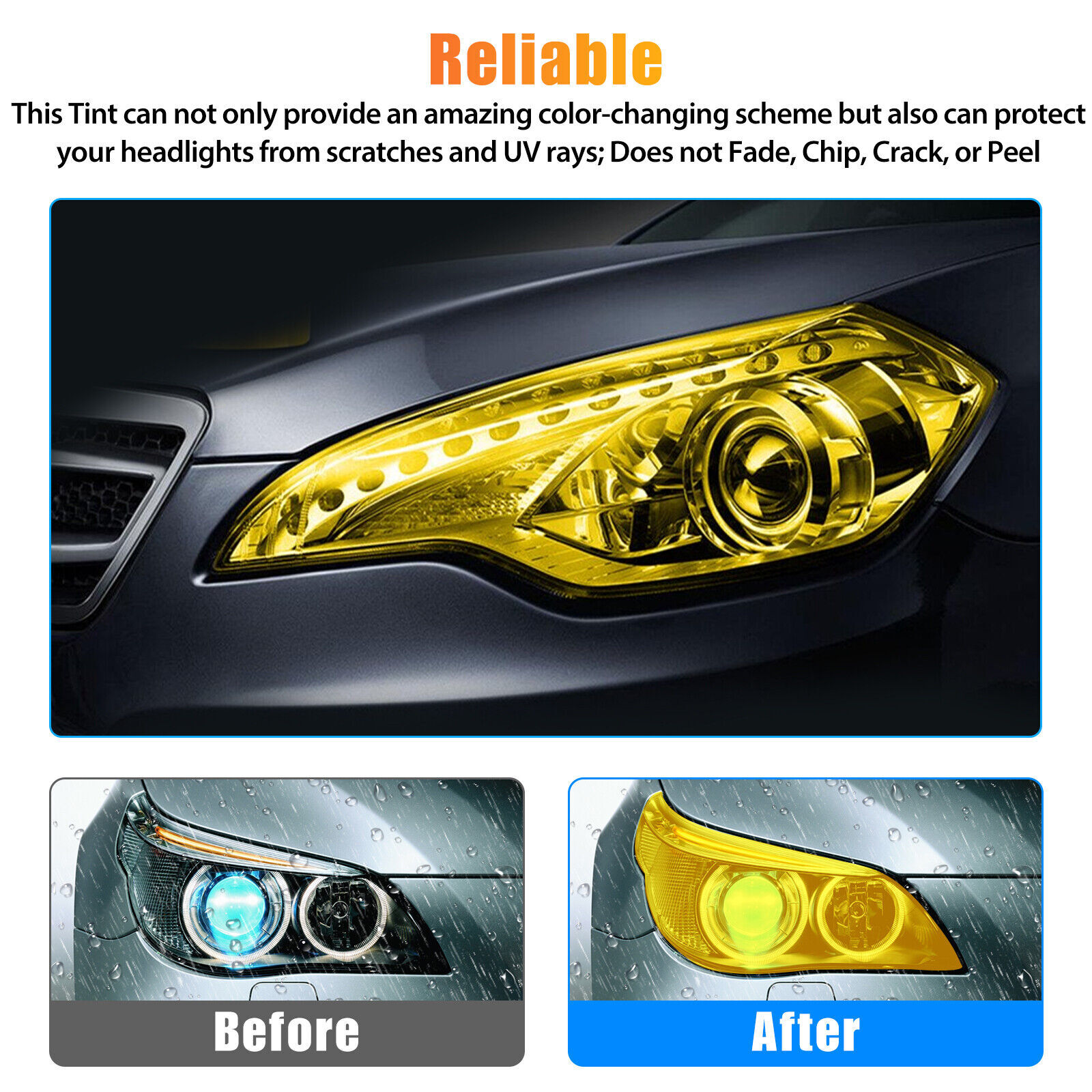 Golden yellow self-adhesive vinyl film for headlights, tail lights, and fog lights