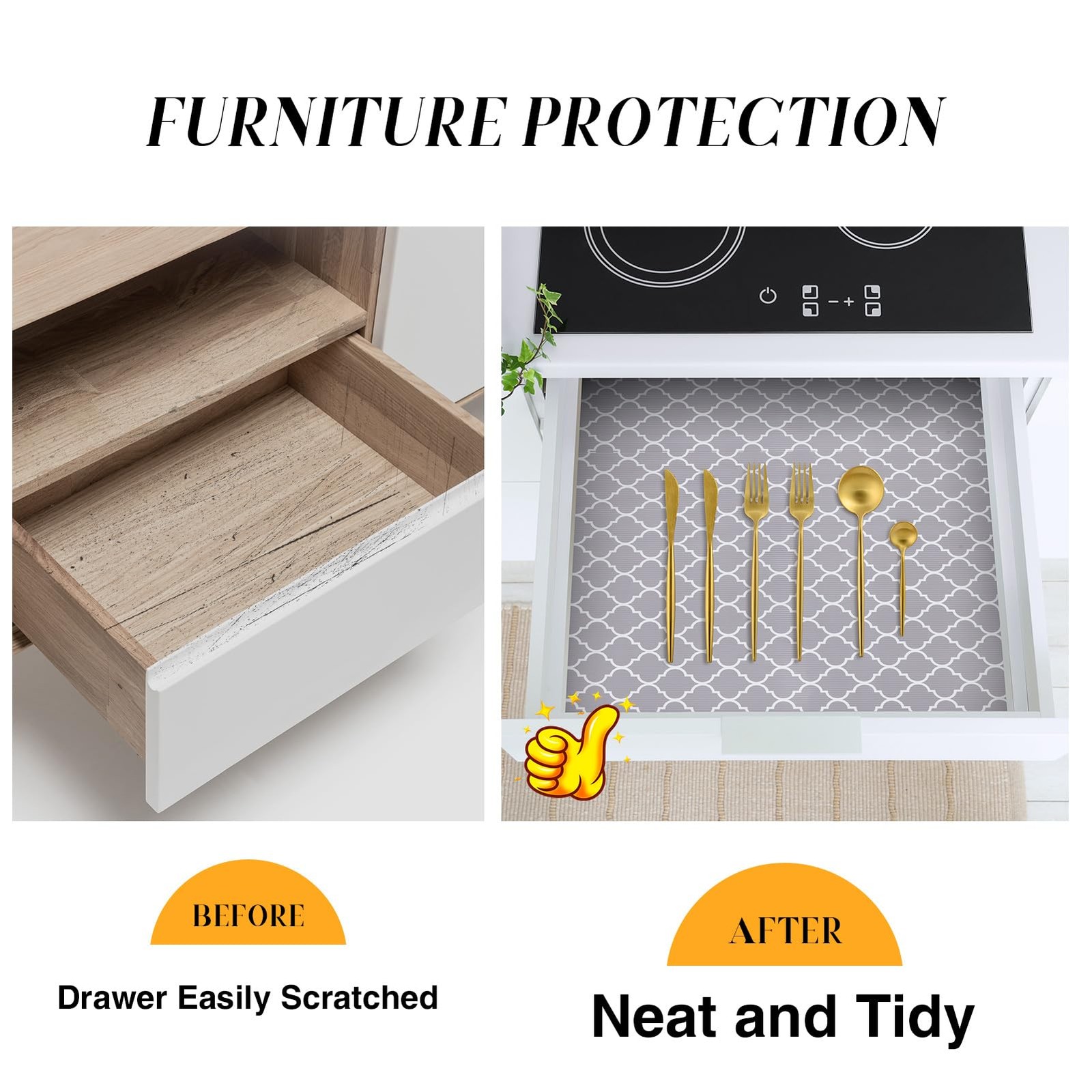 Description: 2 different size(12"*10FT /17.5"*24FT )and Grey and pink color shelf liner for your choice.You can choose the appropriate size according to your user needs. Material: High-quality EVA material, dustproof, moisture-proof and oil-proof, easy to clean,and can be cut at any size on your will. Product Features: 1. Keep the drawers clean and tidy 2. Prevent cabinet from wear and tear 3. Waterproof and non-slip, easy to clean 4. Easy to cut and install 5. Non-toxic, odorless, safe and healthy 6. Can be used repeatedly NOTES: Since the drawer liner is rolled up in package, so they may be curling when being cut into pieces. You can use a warm air blower to blow or put it in warm water for a while, then they will lay flatly on the drawer or shelf. We are confident with our product quality and try to keep customer satisfaction. If you have any questions, please feel free to contact us. shelf darwe cabinet mat paper cover Non Slip Shelf Liner for Storage Solution- Measures 12” x 20 ft. with a non-slip double-sided mat, the shelf liners help prevent spills in storage spaces by keeping your items locked in place and free from unwanted dirt and debris. The quatrefoil design of this wire shelf liner is not only beautiful but also effective to secure your belongings on the wire shelf, glass shelves and so on. Premium Drawer Liner- Made of Food-Grade EVA Material, this kitchen, drawer, cabinet, shelf, fridge and general storage shelf liner is made of BPA-free, odor-free, and eco-friendly EVA material for your safety. The non-slip design sticker on the bottom of this cabinet liner allows your kitchen supplies to stay organized, in place and on the shelves, wire rack and pantry. Waterproof and Easy to Clean- These storage shelf liners are waterproof and dust-proof which keeps belongings in your kitchen cabinet, refrigerator and drawer organized and protected from grease and spills. The non-adhesive shelf liners are easily removable and can be cleaned with mild soap and water. Non Adhesive Shelf Liners with Easy Installation- This drawer liners for kitchen is in the most popular pre-cut sizes for easy installation. For unique sizes and shapes, you can simply trim the kitchen cabinet liner with household scissors. Just place the liners down in your drawer or cabinet and trim off any excess material. Plus, the drawer liners are non-adhesive and easily removable. Heavy Duty & Thick & Durable- Unlike those shelf paper liner, thise EVA-made plastic shelf liner is much thicker and durable. It can be used for as long as you want if you don't throw it away. 💕Buy On Demand💕: Please carefully measure the width of your furniture and calculate the exact length you require before purchasing, as the product size is 12”X 240". Avoid purchasing more than necessary to prevent unnecessary excess.