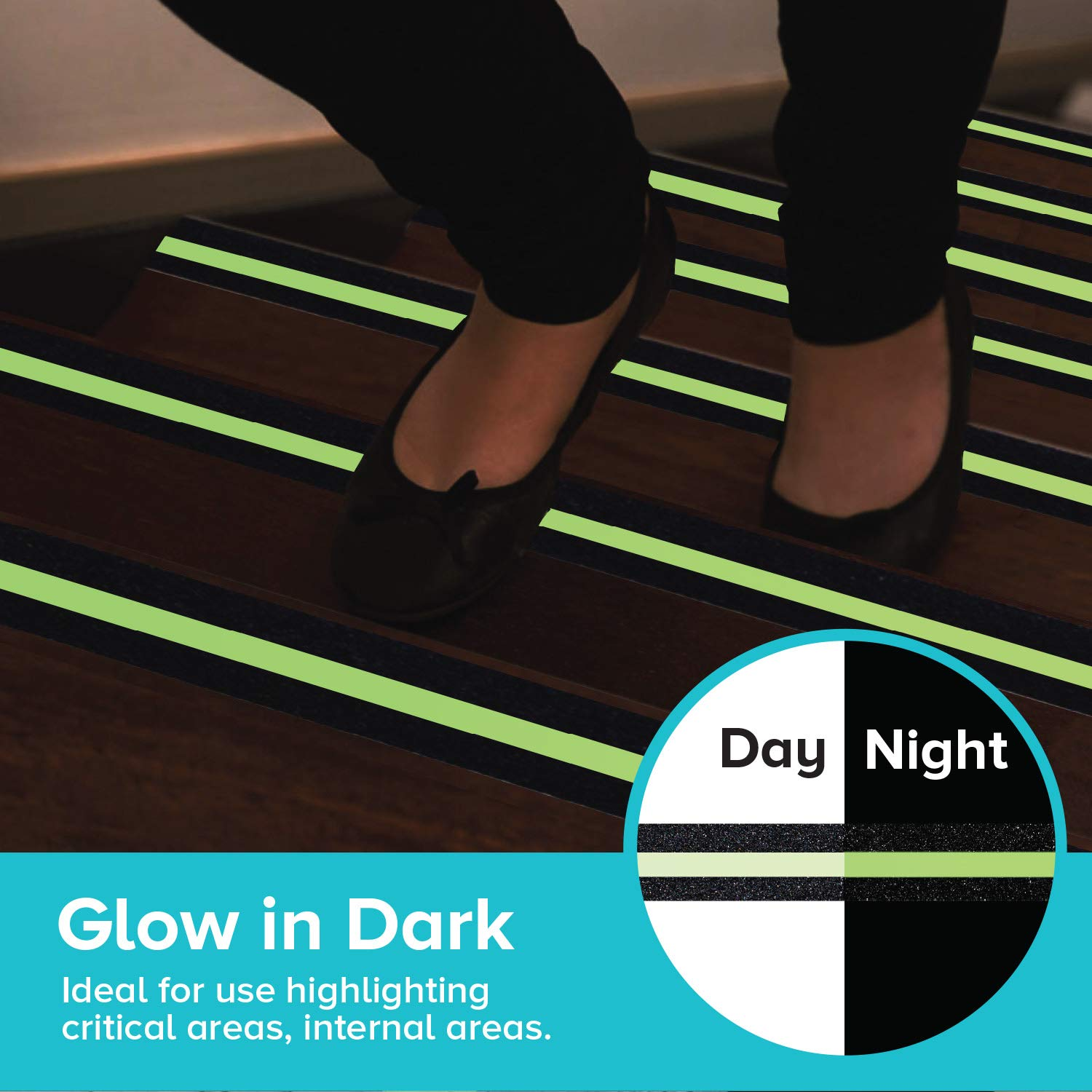 MULT-FUNCTIONAL: Cost-effective, multi-functional safety product. 2 inch by 12 inch LifeGrip Anti Slip Safety Tape with green Glow-in-the-Dark Strip. Photoluminescent stripe can be charged by either natural or artificial light sources. In low light conditions where visibility isn't very good at all, or even in power outs, the glow in the dark strip will help guide people, whether down walkways or warning or ledges and steps, helping to maintain efficient safety levels at all times. MADE FROM PET MATERIAL: Our General Anti-Slip Tapes are made from PET material, which is not only more environmentally safe than PVC but also offers superior durability and tensile strength. The higher tensile strength of PET allows our anti-slip tape to withstand heavy foot traffic and harsh environments, ensuring long-lasting performance. With its easy removal feature that leaves no residue or surface damage, LifeGrip General Anti-Slip Tapes are versatile and convenient for any application. IDEAL FOR EXTREME WEATHER – The PET base layer also withstands extreme temperatures (-10ºc to 60ºc / 14 F to 140 F). No cracking, peeling, disintegrating using in extreme hot or cold weather, perfect for INDOOR and OUTDOOR all year around. HIGH TRACTION TO PREVENT SLIPS - HYPO-ALLERGENIC 80 Grit Aluminum Oxide traction pad boosts foot traction with a subtle texture, giving you utmost protection without sacrificing comfort. Provides extra foot traction for protection to your child, family, elderly, and pets on slippery surfaces. Prevents slipping especially for elderly people. SAFE ON ALL SMOOTH SURFACES - Our anti-slip tape has a thick and aggressive Acrylic adhesive that will form a strong, water-proof bond to Smooth Surfaces, Including concrete, metal, plastic, wood, tile, stone, laminate. This tape is weather and water proof, making it ideal for ensuring safety on steps, ladders, ramps, trailers, decks and other safety equipment. Product Description WHY LifeGrip Safety Safety is our priority! LifeGrip Safety has focused on anti-slip safety tape manufacture and development for more than 10 years. Our goal is to provide not only higher quality and safer products but also comfortable to use and suitable for our environment. We never stop working on introducing safer and better materials and new technology to improve quality and usability. We also think of the extra possibility to add to our product to provide better protection for our customers' safety. DO YOU KNOW - Slip and falls accidents can cause other complications including: Death Incapacitation Broken bones and fractures Long-term medical complications Head trauma Spinal cord injuries LifeGrip General Anti-Slip Tapes are made of PET material as base film. PET has the following beneficial features compared with PVC: Recyclable PET is more environmentally safe than PVC as it is easily recyclable and less harmful to the environment. Durable for heavy foot traffic areas PET has higher tensile strength and is more durable than PVC, making it a better choice for anti-slip tape that needs to withstand heavy foot traffic and harsh environments. Strong in different weather conditions PET material provides a strong barrier against water vapor, dilute acids, gases, oils, and alcohols, making it exceptionally durable and strong in different environments and weather conditions. Easy to remove Using PET material in anti-slip tape makes it easier to remove without leaving residue or damaging the surface, adding to its versatility and convenience. Strong adhesive PET material provides stronger bonding to the adhesive, allowing the anti-slip tape to stick more securely to the applied surface. Sustainable PET material is a smarter choice for those who are conscious of their environmental impact, as it is a more sustainable option than PVC. Inspired by our customers of how to use these anti-slip tapes: "Works great on smooth surfaces." "Too easy" "Excellent product" "Easy to see!" APPLICATION INSTRUCTION: (Quick and Easy) 1. CLEAN THE SURFACE Clean surface with wet cloth thoroughly. Allow the surface to dry completely. Ensure the surface is completely free from dust and grease. 2. MEASURE AND CUT* Cut the tape to the desired length and round the corners with scissors.(To ensure the anti slip tape has the best bonding to the surface, do not apply the anti-slip tape cross the gaps between tiles.) * Pre-cut anti-slip treads can skip this step. 3. PEEL AND STICK Lay the anti-slip strip to the desire location. Lift one end of the strip and peel back the first 2 inches of the backing. Press the tape down as you go. Continue until you have applied the entire strip to the surface. (For stairs, position the tape 1/2 inch from the edge of the stair.) 4. PRESS FIRMLY Roll over the tape with the application roller. Begin in the center of the strip and roll to one end, then return to the center and roll to the other end.