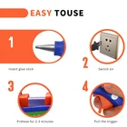 The hot melt glue gun can be used to bond a great diversity of materials such as wood, metal, plastic, glass, ceramic, rubber, leather,stone, wicker, lace, textile, fabric and paper, also for daily quick repairs at home school or office. Easy to operate 1. Insert the hot glue stick from the back of the glue gun. 2. Plug in to preheat for 3-5 minutes. 3. Pulling trigger to use (If the glue stick can't be used up in one time, leave the remaining glue stick in the gun). Warm Tips: 1.Don't use in humid or high temperature and keep it away from children. 2.The nozzle and the glue liquid are hot when the gun is working, please don't touch it. 3.Don't disassemble the melt glue gun in any case. 4.Keep a drip card or tray under it when you set it down and you won't need to worry about any mess. 5. Glue gun nozzle must not be held upwards. Specifications: - Hot Glue Gun ● Material: plastic and aluminum ● Power: 20W ● Voltage: 100 to 230Vv ● Nozzle diameter: 0.070-0.078 inch ● Cable length:49.5inch ● Size: 5.1 * 4.3inch ● Pre-heat time: 3-5 minutes -Wood Craft Sticks ● Material:Wooden ● Color: Light yellow ● Size: 14 *1.0 cm 2 mm thick ● Quantity: 20PCS - Glue StIcks ● Material: Resin EVA ● Grade: A+ ● Softening Point: 73°C±5 ● Working Temperature: 120°C - 150°C ● Cure time: 8 - 12s ● Diameter: 7.0mm ● Color: Transparent White - Carrying Case Material: Hard Shell EVA Size: 7.5 x 6.5inch Color: Black Packing List 1x Hot Glue Gun 20 x Glue Sticks (7.0mm x 150mm) 20 x ice pop sticks 1 x Carrying Case 【QUICK HEATING & CONSTANT TEMPERATURE】The hot glue gun heats up in 3-5 minutes and the built-in constant temperature module keeps your mini hot melt glue Gun at a constant temperature to prevent the glue sticks from dripping during using.Ideal for home, office and school use, DIY crafts projects with metal, wood, glass, card, fabric, plastic, ceramics and so on. 【EXTRA 20PCS GLUE STICKS & 20PCS WOOD CRAFT STICKS】Our glue gun kit provides 20 pieces environmental-friendly and strong-adhesive transparent glue sticks(7.0mm x 150mm) and 20pcs ice pop sticks(2.0mm x 140mm),Perfect for home, office and school DIY crafts like metal, wood, glass, card, fabric, plastic, ceramics etc.Great christmas gifts or birthdy gifts for kids 【SAFETY DESIGN & USER-FRIENDLY】The built-in fuse prevents it from overheating,Solid durable, shock-proof and heat-proof plastic outer body.The nozzle is wrapped in rubber that will protect it from scalds.It’s easy to toggle the On/Off switch so that you don't need to unplug them every time you want to turn them off, and the LED indicator light lets you know that the tool is heating up. Simply pull the trigger gently, the melted glue will gently exude. 【FLEXIBLE KICKSTAND & EASY CARRYING CASE】The detachable and flexible stand holder makes your hot glue gun stay stable and upright in the process of using, thus to prevent the melt back to damage the gun.The equipped tool carrying case is perfect for storing glue gun sets, Easy carrying and doesn't take up too much space.Our hard storage case also fit for gorilla mini hot glue gun Kit and hot glue sticks 【WARM PROMPT】:Keep clean of the glue sticks to avoid impurity block the nozzle, and do not pull out of the remanent glue sticks after use. Our hot glue gun is a great gift for home, office and school DIY crafts.If there are ever any issues, just contact us and we will make it right.