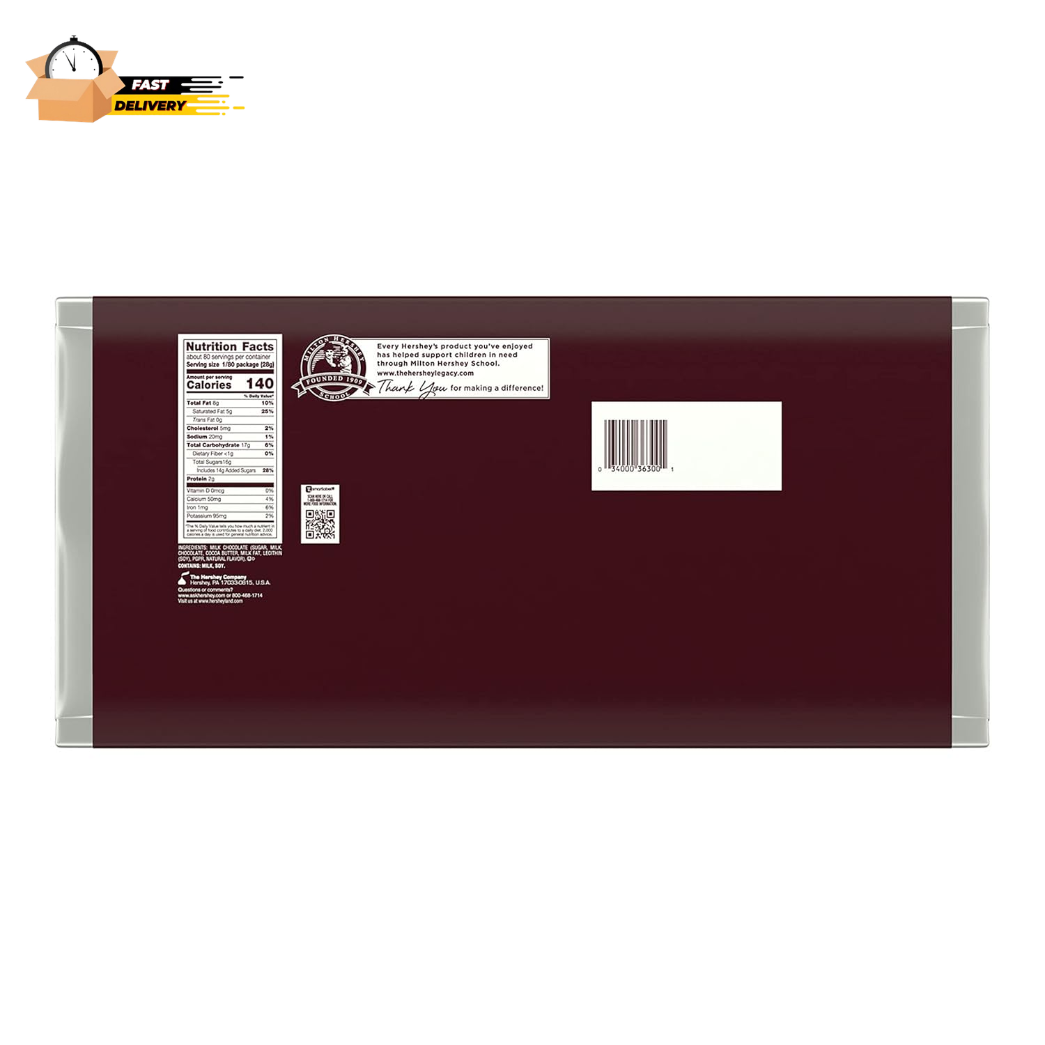 Store New Arrivals Add to Favorite View Feedback Contact Milk Chocolate Giant, Bulk Gluten Free Giant Candy Bar, 5 Lb Description Item model number 10034000363008 Chocolate Type Milk Product Dimensions 0.8 x 18.1 x 9.22 inches; 5 Pounds Country of Origin USA Flavor Name Milk Chocolate Units 80.0 Ounce Occasion Halloween Flavor Milk Chocolate Is Discontinued By Manufacturer No Item Form Bar Size 5 Pound (Pack of 1) Contains one (1) 5-pound HERSHEY'S Milk Chocolate Candy Bar Bring your candy collection, gift giving and s'mores games to the next level with a 5 pound HERSHEY'S classic milk chocolate candy bar Kosher milk chocolate candy wrapped for lasting freshness and epic snacking and sharing This oversized bar is perfect for Mother's Day and Father's Day celebrations, weddings, graduations and back to school preparation A 5 pound bar of the classic, creamy HERSHEY'S milk chocolate the world has known and loved for decades to add to your Christmas, Valentine's Day, Easter and Halloween candy selections Includes cold packs to prevent melting during summer. Made from deliciously creamy milk chocolate, this massive 5-pound HERSHEY'S milk chocolate bar is a classic that's been enjoyed for decades. Whether you enjoy this colossal candy bar alone or share it with loved ones, you can count on this sweet to put a smile on any face. This larger-than-life candy bar is the perfect treat for countless special and everyday occasions. This HERSHEY'S milk chocolate candy bar can be used to stuff Christmas stockings, Halloween trick or treat bags, Easter baskets and Valentine's Day party favors. ABOUT US We offer the best prices around on high quality products. Our E-store includes media such as books, movies, music and games while offering electronics, toys, sporting apparel, clothing, tools, general home, garden items and more. SHIPPING We are always working hard to ensure your package arrives as soon as possible. Please understand that some factors like weather, high postal traffic, and the performance of shipping companies are outside of our control. We offer free shipping to the lower 48 states and ship within 2 business days of payment, usually sooner. We do not accept P.O. Boxes. Please provide a physical address. For shipping outside of the continental USA, we only use eBay's Global Shipping Program.The item is shipped to KY and then sent to the rest of the world. International customers are responsible for all duties and taxes. Continue to check out in order to calculate costs for shipping the item to your country. Messages regarding eBay's Global Shipping Program MUST be directed at eBay EXCLUSIVELY. RETURNS We offer a 30-Day Return Policy on items which you are not completely satisfied with. You have the option for a full-refund or an exchange of the item. No returns are available on items shipped outside of the USA. PAYMENT We accept PayPal. CONTACT US This page content is yet to come Please ad us to your favorite seller and visit again later Thank You CUSTOMER SATISFACTION We try our very best to make sure every customer is completely satisfied. If there's a problem, message us! We're happy to help. WE ACCEPT Copyright © 2021 AutoDS. | All Rights Reserved