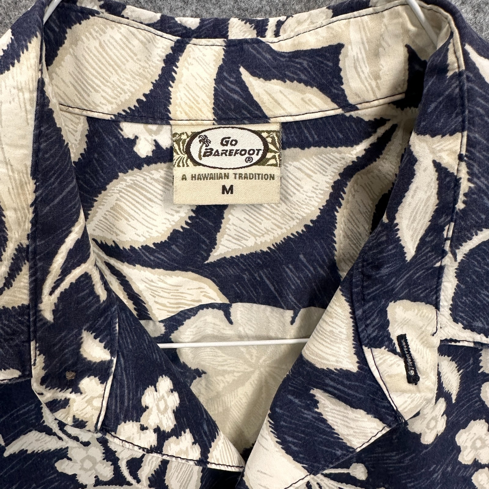 This VTG (late 90's - Y2K) Go Barefoot Aloha Shirt in Blue and White Floral design is a traditional Hawaiian cotton shirt perfect for casual occasions in the spring and summer seasons. This short sleeve button-up shirt features a collared neckline and woven fabric with a Hawaiian theme, making it a stylish yet comfortable choice for men looking to showcase their love for Hawaiian culture. Made in the United States by the brand Go Barefoot, this size M shirt is machine washable for easy care. Ideal for those who appreciate the beauty of Hawaiian floral patterns and the laid-back style of a casual button-down shirt. Please see measurements in photos to ensure proper fit.
