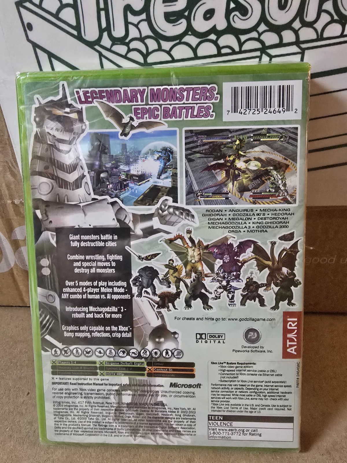 Xbox-specific features include the addition of Mechagodzilla 3, two new arenas, computer-controlled combatants in both four-player melee and team games, and an option to play Destruction Mode alone. New arenas consist of the Vortaak Home World and a giant Boxing Ring. The former features volcanoes, alien structures, spaceship launchers, and more, while the latter offers ropes, bells, and blimps in what is described as the "largest boxing ring in the world constructed for monster battles." Other enhancements include upgraded visuals with bump-mapping, high-resolution textures, and other special effects, as well as support for custom soundtracks.gtin13:0742725246492Release Year:2003MPN:742725246492Rating:T-Teen