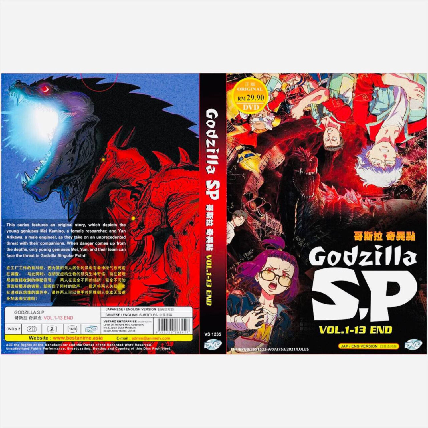 Payment TILE : Godzilla S.P - Complete TV Series Synopsis This series features an original story, which depicts the young geniuses Mei Kamino, a female researcher, and Yun Arikawa, a male engineer, as they take on an unprecedented threat with their companions. When danger comes up from the depth, only young genuises Mei, Yun, and their tean cab face the treat in Godzilla Singular Point! Number of Episode : 1 - 13 End Number of Disc : 1 Language : Japanese / English Subtitle : English / Chinese Condition : NEW, Original & Licensed Item Disc Format : NTSC Region Code : All Region/Region FREE "0" Payment We accept payment using eBay manage payment only. Delivery Free Register Track Your Shipment 10 ~ 21 Days Without Sat - Sun Working Days. Item will be shipped ONLY after clearing of payment. All order will process 2-3 working days (Not included weekend or public holiday) after received the payment. We only ship to confirm address on "Ebay Invoice Order Detail". Return Buyer Pay The Return Postage. 30 days Returnable. Items must be returned in perfect original condition, buyer responsible for returns shipping cost. Refunds will be arranged thru Paypal. Feedback Should Any Problem Arise, Please E-Mail Let Us Know & We Will Do Our To Correct Any Problem