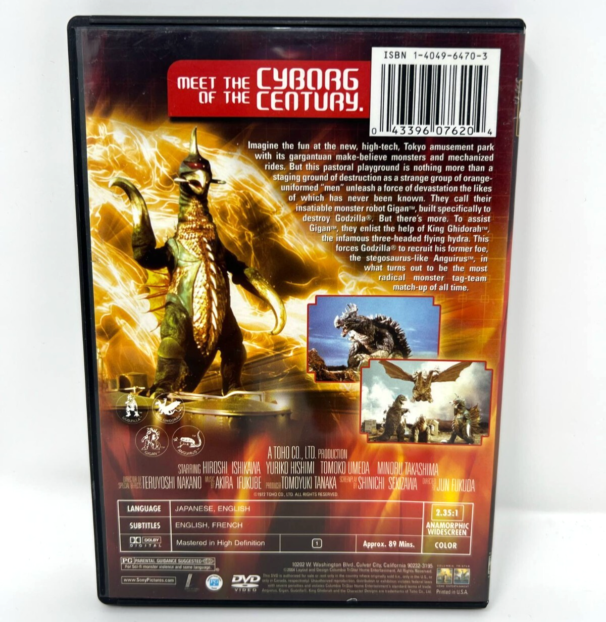 Originally produced in 1972, this Godzilla film is among the best loved for its funny quirks and quintessential moments. Godzilla battles the chicken-headed space monster, Gigan, and a host of other evil alien creatures. The film's high point is a dynamic extended fight sequence between Godzilla, Gigan, Angurius, and King Ghidorah. All of the elements that have made Godzilla a favorite are here: actors dressed in rubber monster suits, stock film footage, and goofy characters that are an afterthought to the charismatic giant reptiles.