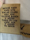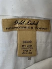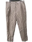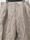 These Gold Label men's dress pants in brown are a classic addition to any wardrobe. The pants feature a flat front with a 5-pocket design, a mid-rise fit, and a straight leg style. Made from a linen cotton blend fabric, they offer comfort and style for all seasons. The pants come in size 36 waist and 30 inseam, with button accents and a logo detail, perfect for a city or preppy themed look. Whith wear and wrinkles