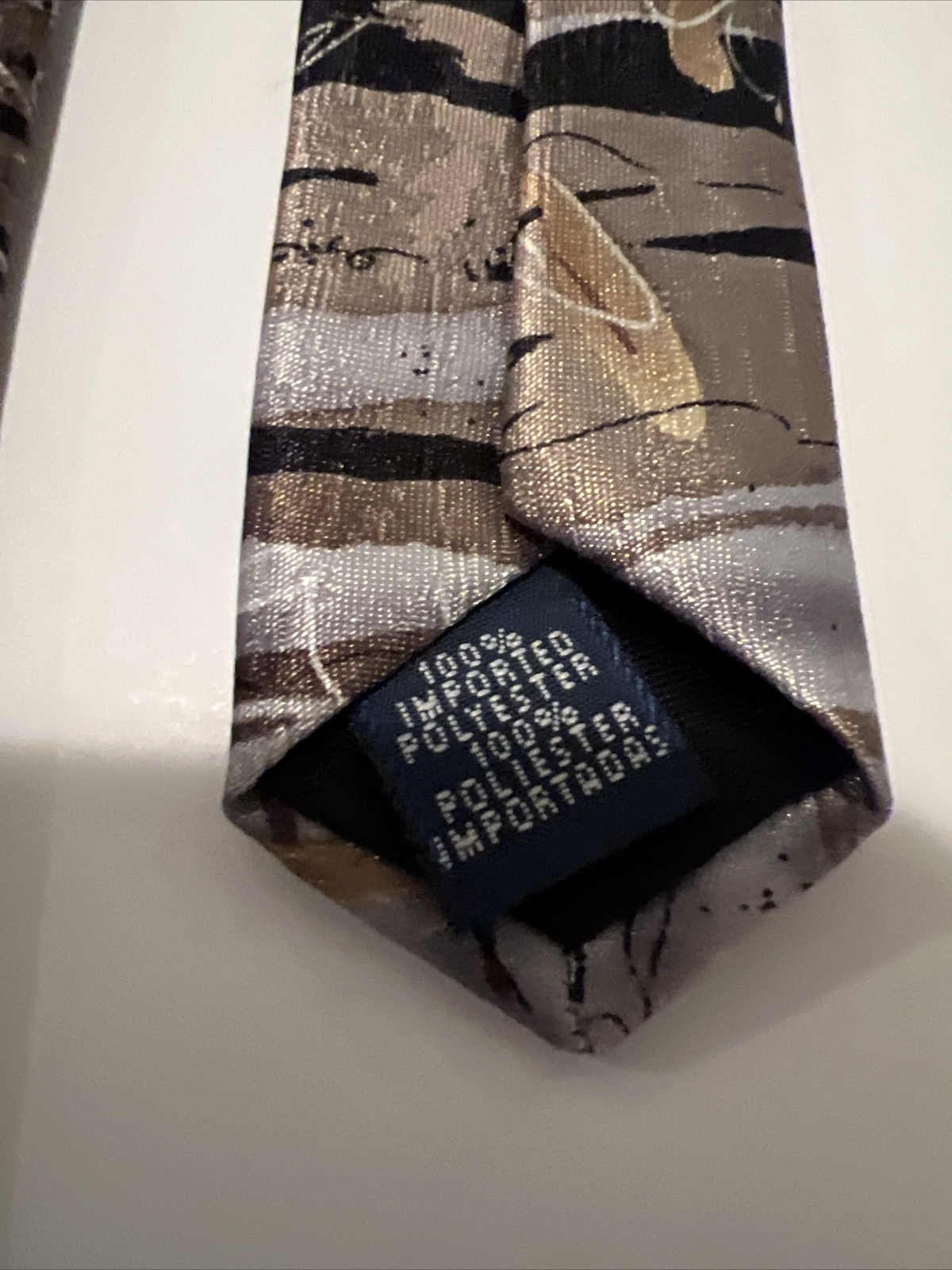 Elevate your style with this stunning David Taylor necktie. The tie features a unique geometric pattern in gold, black, and silver, making it a perfect addition to any outfit. The tie is made of high-quality polyester material and measures classic lengths (57"-60") and widths (3 1/2"-3 3/4") for a comfortable fit. The tie also features a subtle logo accent, adding to its overall appeal. Whether you're dressing up for a formal event or adding some flair to your everyday work attire, this necktie is sure to make a statement.