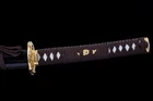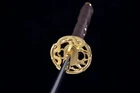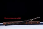 Product Parameter: Number: TYQ467 Name: 金蟒 Material: T10 High carbon steel Overall: 103cm/40.6" Blade: 70cm/27.5'' Handle: 26 cm/10.24'' Widdth: 3.2 cm/1.26'' Thickness: 0.7cm/0.28'' Blood groove: No bohi Hardness(HRC): 56 Tang(nakago): Full tang Fittings : Alloy Saya: Hardwood sheath with delicate dragon pattern Craft: Fully handforging,quenching, traditional shiage-tōgi polishing. You can use it to cut bamboo,paper and water bottles,tatami, etc. Tsuba & Fuchi & Kashira & Habaki Saya Additional Service About us Delivery details Tsuba & Fuchi & Kashira & Habaki Alloy Tsuba Iron Tsuba ( extra $10) Brass Set ( extral $50 ) Alloy Fuchi & Kashira Habaki TSUKA-ITO & SAGEO Tsuka-ito is the wrapping of the tsuka and sageo (下緒 or 下げ緒) is a hanging cord that is passed through the hole in the kurigata (栗形) of a Japanese sword's saya. SAMEGAWA Samegawa(鮫皮)is the ray or shark skin wrapping of the tsuka (handle/hilt). Saya Please contact us before placing an order to see if there is any stock available, as well as any additional charges. OX Horn Saya Additional Service It's free for engraving English words, Chinese Characters and Japanese Kanji , etc. You need pay extral $20-30 for engraving patterns. Hamon We can add or remove the machine-made wavy hamon for free. Bo-hi ( Blood Groove) Usually thought be used for bloodletting only. It is also used to lighten the weight of the sword. We can add or remove Bo-hi for free Sharpness Most of our blades are sharp. We can also make the blade unsharpened for free if you require. Colored Blade If you want to change to a different color blade, please contact us before purchase. Matching Swords Set If you buy one katana, we can make a matching Wakizashi or Tanto for you. The price varies from different swords. Please contact us if you need make custom matching set. About us We have our own sword-casting factory. The factory is located in Longquan, a small town with a long history of sword-casting in China. Most of the famous Swords in China are made there. Rich raw materials, skilled technology, traditional sword casting technology from generation to generation. Manual production really takes a lot of time. We will prepare most products in advance ,and arrange delivery within about a week. However, sometimes the delivery time is delayed due to weather or raw materials,etc. we hope to get your understanding. Feel free to contact us to inquire about the status of your order. Each handmade sword is unique. Our swords are great for gifts or for your own collection. Our swordsmithing master makes every sword attentively, hope you can feel our sincerity. We will also give you the best customer service, any questions please feel free to contact us. Delivery details a) Import duties, taxes and charges are not included in the item price or shipping charges . These charges are the buyer’s responsibility. b) If you do not receive the package, or the package is damaged during transportation. We'll take care of it. Please feel free to buy. c) If it is mentioned in the product description that the package includes the sword bag or sword holder , the style will be random. The sword holder or sword bag on the ebay picture is the props we use for shooting. If you really like a style, please contact us before buying. d) If you have any problem after recieve the package (wrong size, wrong style, etc.). We always provide you with the best after-sales service. Please give us a chance to help you before you give us a bad feedback . Thank you very much!