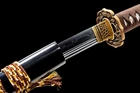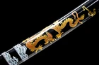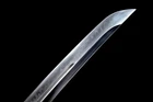 Gold Dragon Wakizashi Clay Tempered T10 Real Hamon Japanese Samurai Sharp Sword Product Parameter: Name: 龙云肋差 Blade: Clay tempered T10 high carbon steel Overall: 78cm/30.7'' Blade: 50cm/19.68'' Handle: 20 cm/7.87'' Width: 3.2 cm/1.26'' Thickness: 0.7cm/0.28'' Bo-hi(blood groove): Yes Blade Type: Unokubitsukuri Hardness(HRC): 60 Tang(nakago): Full tang Hamon: Handmade Real hamon Scabbard: Lacquered wood saya with delicate gold dragon design Craft: Fully hand forging,traditional mirror polishing,and clay tempering,oil quenching,etc. Fittings: Top grade Brass Wakizashi: The wakizashi has a blade between 30 and 60 cm (12 and 24 inch), with wakizashi close to the length of a katana being called o-wakizashi and wakizashi closer to tantō length being called ko-wakizashi.The wakizashi being worn together with the katana was the official sign that the wearer was a samurai or swordsman of feudal Japan . The katana was the big or long sword and the wakizashi the companion sword.Wakizashi are not necessarily just a smaller version of the katana; they could be forged differently and have a different cross section. Additional Service About us Sword Noun Explananation Delivery details Sword maintenance Additional Service It's free for engraving English words, Chinese Characters and Japanese Kanji , etc. You need pay extral $20-30 for engraving patterns. Sharpness Most of our blades are sharp. We can also make the blade unsharpened for free if you require. Matching Swords Set If you buy one katana, we can make a matching Wakizashi or Tanto for you. The price varies from different swords. Please contact us if you need make custom matching set. About us We have our own sword-casting factory. The factory is located in Longquan, a small town with a long history of sword-casting in China. Most of the famous Swords in China are made there. Rich raw materials, skilled technology, traditional sword casting technology from generation to generation. Manual production really takes a lot of time. We will prepare most products in advance ,and arrange delivery within about a week. However, sometimes the delivery time is delayed due to weather or raw materials,etc. we hope to get your understanding. Feel free to contact us to inquire about the status of your order. Each handmade sword is unique. Our swords are great for gifts or for your own collection. Our swordsmithing master makes every sword attentively, hope you can feel our sincerity. We will also give you the best customer service, any questions please feel free to contact us. Sword Noun Explananation Quenching After the blade has been shaped, the sword would be quenched. We quench our swords in either water or oil. Water quenching produces a tougher edge which can also be hardened further more using clay. Blades quenched in oil are still considerably hardened and do have superior flexibility compared to a water quenched blade. Folded Steel : In the forging process , the most useful process is the folding, where the metals are forge welded, folded, and welded again, as many as 124 times(15 times is the best). The folding removes impurities and helps even out the carbon content, while the alternating layers combine hardness with ductility to greatly enhance the toughness. The less impurities, the harder and sharper the blade will be. We have done cutting tests on the blades. it can cut bamboo(young bamboo tree), grass mattings and slice paper(The blade should be tilted at 45 degrees). Clay tempered : To maximize both the cutting edge and the resilience of the sword spine, a technique of differential heat-treatment is used.The sword is painted with layers of clay before heating, providing a thin layer or none at all on the edge of the sword, ensuring quick cooling to maximize the hardening for the edge.A thicker layer of clay is applied to the rest of the blade,causing slower cooling.This creates softer,more resilient steel, allowing the blade to absorb shock without breaking. About 1095 carbon steel : The best quality of high carbon steel is at 1095, the carbon content was 1.03%, and the element contains a small amount of chromium, molybdenum, vanadium, after heat treatment can reach HRc58-60 hardness, toughness is very good, but not resistant to rust, more be applied to traditional european-style hunting knife, large cutting knife and military dao. Such as the United States during world war ii "KA - BAR" saber is in 1095 as the blade material. Kobuse : The vast majority of modern katana and wakizashi are the maru type which is the most basic, with the entire sword being composed of a single steel. The kobuse type is made using two steels, which are called hagane (edge steel) and shingane (core steel). Steel of different materials is forged and welded together to hammer the basic shape of the sword. This allows the overall blade to have a higher toughness and absorb a lot of impact. Reducing the possibility of breaking or bending to some extent. Makes the blade not only has high hardness, but also has super toughness Delivery details a) Import duties, taxes and charges are not included in the item price or shipping charges . These charges are the buyer’s responsibility. b) If you do not receive the package, or the package is damaged during transportation. We'll take care of it. Please feel free to buy. c) If it is mentioned in the product description that the package includes the sword bag or sword holder , the style will be random. The sword holder or sword bag on the ebay picture is the props we use for shooting. If you really like a style, please contact us before buying. d) If you have any problem after recieve the package (wrong size, wrong style, etc.). We always provide you with the best after-sales service. Please give us a chance to help you before you give us a bad feedback . Thank you very much! Sword maintenance