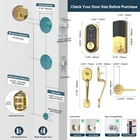 About this item: 【 Fingerprint Door Lo ck 】Say goodbye to fumbling for your keys, the Smart Lock is the solution you need! With the ability to recognize your fingerprint in just half a second and unlock your door in just one, it's the fastest option for keyless entry. Plus, you can even connect it to Alexa or Google Assistant for added convenience (WiFi Gateway Included) 【 Multiple Ways to Unl ock 】Upgrade your home security with the smart door lock! Not only does it bring you peace of mind, but it also transforms your home into a smart space. With five unlocking options - including through the app, keypad, fingerprint, IC fob, and mechanical keys - you'll never have to worry about forgetting your keys again. And with the ability to pair with the wifi gateway, you can control your lock from anywhere and monitor who enters your home, all from the palm of your hand. 【 K e yless Entry Door Lock w ith Ha n dle 】Take control of your lock with the Sign in app for smart door locks for front door. With real-time updates, you can see every time your lock is used and any incorrect passcode attempts. Plus, the Code Door Lock offers you the ability to generate custom, permanent, one-time, or timed passcodes for guests, friends, housekeepers, or employees, giving you full control over who has access to your home. 【 High Security and Long-battery L ife 】Keep your home or rental property secure with the Smart Locks for Front Door. With its sleek, alloy body and easy-to-use touchscreen display, this digital door lock with keypad set not only looks great but is also functional. With long battery life - up to 10,000 openings with just 4 AA batteries - you won't have to worry about changing the batteries often. And for added security. Ideal for homes, hotels, Airbnb, and more. 【 E a sy to Ins tal l 】The electronic door lock is easy to install and program with just a screwdriver, and is compatible with all American standard left and right handed doors. It can be done in a few minutes with no professional help required. Specifications: Brand: Smonet Model: Y1 Color: Gold Material: Alloy Shape: Oval Style: Modern Door Direction: Universal / Reversible (Both Left & Right, Inswing & Outswing) Connectivity Protocol: Bluetooth Ways to Unlock: Fingerprint / Keypad Passcode / Key Fobs / Physical Keys / Phone APP / Remote or Voice Control Control Method: App Phone APP: TT Lock / Next Lock (Totally FREE) Remotely / Voice Control: Alexa or Google Home (Extra WiFi Gateway Needed) Lock Type: Keypad Finish: Painted Controller Type: Hand Control Control Method: Touch Power Supply: 4x AA Battery (NOT Included) IP Rating: IP63 Item Dimensions LxWxH: 16.8 x 7.48 x 3.94 inches Item Weight: 5.06 pounds What's in the box: 1x Front Door Lock Keypad 1x Rear Door Lock Panel 1x Front Door Handle 1x Rear Door Lever 2x Latch 2x Key Fobs (IC Cards) 2x Physical Keys 1x Strike Pad 1x Strike Plate 1x Battery Cover 1x Drilling Template 1x Installation Screws Pack 1x User Manual Fingerprint Recognition Forget your keys? Unlock your door lock with your fingerprint within 1 second. Work with Alexa and Google Home Paired with Amazon Alexa or Google Home, respond to your voice to lock and unlock the door Smart Phone APP - Remote Control You can remotely control the locks on your doors from anywhere with just a few taps on your smartphone or computer. For House For Office For Garage On Apr 4, 2025 at 23:43:42 PDT, seller added the following information: