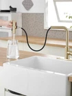 Gold Kitchen Faucets with Pull Down Sprayer,Waterfall Kitchen Sink Faucet,Commercial Utility Stainless Steel Kitchen Faucets,Single Handle Kitchen Sink Faucet with Pull Down Sprayer for 3 Function Product Details Color: Matte Gold Style: Waterfall Brand: JOOM MPN: JU011G01 UPC: Does not apply EAN: Does not apply Brand: JOOM Recommended Uses For Product: Kitchen Mounting Type: Deck Mount Finish Type: Lacquered Material: Stainless Steel Color: Matte Gold Number of Handles: 1 Included Components: Sprayer Hole Count: 1 Special Feature: Pull Down Sprayer Brand: JOOM Recommended Uses For Product: Kitchen Mounting Type: Deck Mount Finish Type: Lacquered Material: Stainless Steel Color: Matte Gold Number of Handles: 1 Included Components: Sprayer Hole Count: 1 Special Feature: Pull Down Sprayer Handle Type: Lever Style: Waterfall Installation Type: Single Hole Model Name: JU011-12 Handle Material: Stainless Steel Warranty Type: limited Handle Location: Center Spout Design: Waterfall Is Electric: No Manufacturer: JOOM Product Dimensions: 3.2"D x 9.5"W x 18"H Part Number: JU011G01 Item Weight: 3.63 pounds Country of Origin: China Item model number: JU011-12 Finish: Lacquered Special Features: Pull Down Sprayer Batteries Included?: No Batteries Required?: No Date First Available: March 11, 2024 Powerful faucet sprayer:The JOOM Kitchen Faucet a robust wide spray to eliminate stubborn residues, a gentle aeratorstream for delicate fruit rinsing, and a sweeping spray for extensive coverage. Unmatched Flexibility:The Kitchen Faucet provides unparalleled flexibility with a 360 swivel spout and a retractable PEX hose. Single-Handed Control:The single-handle mechanism empowers you to control water temperature and flow volume with one hand. Free up the other hand for multitasking, transforming kitchen chores into fluid, time-efficient activities. Premium Craftsmanship:The waterfall kitchen faucet. Crafted from eco-friendly SUS 304 stainless steel, it resists corrosion and rust. No Plumbers Needed:Designed for your convenience, the faucet for the kitchen sink comes with a pre-attached deck plate and pre-installed hoses.
