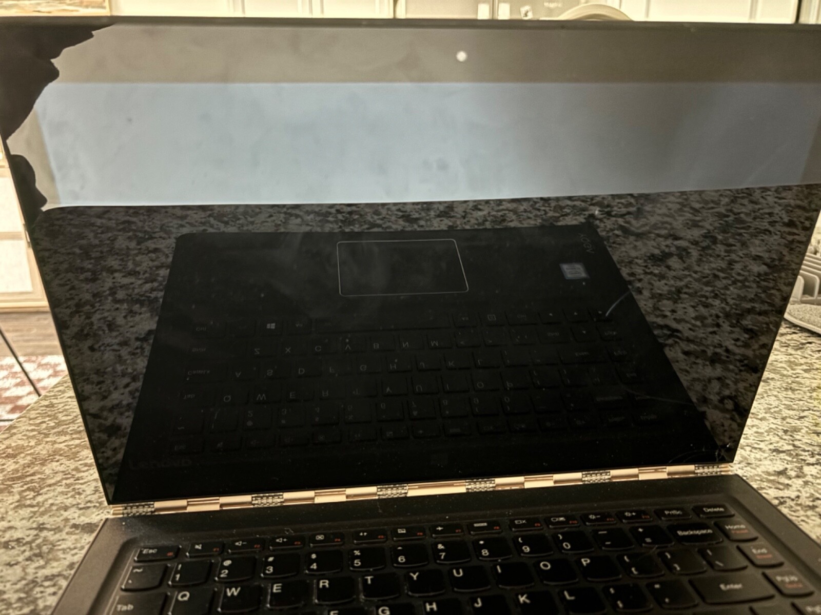 This Lenovo Yoga laptop is a powerful and stylish Notebook/Laptop with a 14 inch screen size. It features an Intel i7 processor, 8GB of DDR4 RAM, and a hard drive capacity of 8GB. The laptop comes in a striking gold color and runs on Windows 10 operating system. It's a great choice for anyone looking for a laptop that can handle multiple tasks with ease. The Lenovo Yoga is perfect for professionals, students, and anyone who needs a reliable and efficient laptop. Please note crack in screen. Does not affect usability but does affect touchscreen capability.