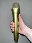 *this is a plastic fake dummy prop microphone that does not work* Gold colored plastic prop microphone. Perfect for photos, concerts, lipsync, play, parties, and costumes.
