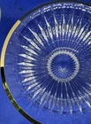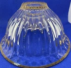 Add elegance to your dining table with this stunning Mikasa Crystal bowl. The round, 6.5" diameter bowl features a thick gold trim and a clear, glossy finish. This vintage piece from the 1940s is studio crafted and weighs 1.6 lbs. Perfect for serving fruits or other dishes, this decorative bowl is a must-have for any collector or hostess. No chips or cracks. Very slight wear to gold rim. See photos in details. Very slight wear.
