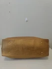 Gold Tone Stud Faux Leather Women's Beach Tote Overnight Carry On Mag Snap Double Handle Shoulder Bag 17 x 11 x 6" w/9" straps Approx. Excellent Condition Lightweight color may vary lvrmwhbk I clean somewhat but you may want to clean before use at your discretion do to items are Purchased from Secondary Source