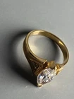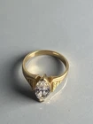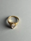 This Gold Toned Ring featuring a Marquise-cut Cubic Zirconia Stone in size 7.5 is a stunning piece of fashion jewelry perfect for an anniversary occasion. The ring boasts a classic solitaire setting with a main stone width of 5mm, making it a captivating and elegant accessory. The gold color and cubic zirconia material add a touch of sophistication to any outfit, while the undated era design ensures a timeless and stylish look. Whether as a gift or a personal treat, this ring is sure to make a statement.