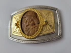 Gold and Silver Belt Buckle with Wooden Cowboy Portrait Metals Untested Each item is carefully packaged to prevent any damage and is shipped immediately with tracking.