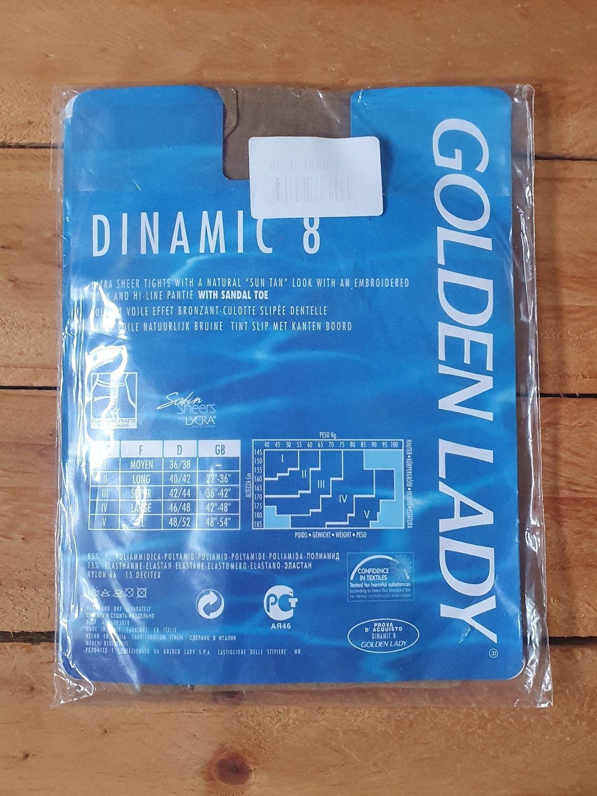 Do you remember the first time you tried on nylons? Perhaps sneaking a pair from your mother or after receiving some as a gift. That smooth, unmistakable sensation as fine hosiery glides over your skin, as light as air — elegant, indulgent, and quietly irresistible. But there’s something about vintage hosiery that modern tights and pantyhose just can’t quite replicate… a look, a feel, a moment in time. If you appreciate classic nylons, our collection is sure to stir more than just a little nostalgia. Thanks for looking, Elle, Tightsbox x This is a pair of Golden Lady Dynamic 8 Ultra Sheer Nylon Tights Size: 36 - 42 / Size 3 Colour/Shade: Honey Features: Ultra sheer sun tan look, Embroidered body, Sandal Toe,85% Nylon 15% Lycra. Condition This item remains in great condition, unused and unworn, and comes in its original packaging. Discreet Shipping & Peace of Mind All hosiery is shipped promptly and discreetly , with no indication of the contents or store name on the outer packaging. Your privacy is always respected. Items come from a clean, smoke-free environment and are carefully packed to ensure they arrive safely.
