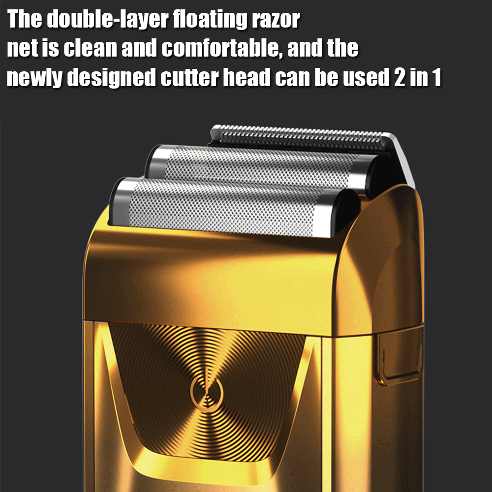 Description ★ Foil shaver: Easily and comfortably trims face, neck and chin. Safe and clean without hurting the skin. ★ Speed: The shaver has 3 speed adjustments. 6 500RPM at most. Give you a quick shave. ★ Pop-up trimmer: Easily and quickly trim longer beards and sideburns for you. Leaves your face refreshed and cleansed. ★ LED: The LED display clearly shows the remaining percentage of the battery. Reminds you to recharge your hair shaver. ★ Battery power: The shaver has a built-in 1 4 00mAh battery, which can be used for up to 1 2 0 minutes after charging for 2 hours. Product Details : Material: ABS Color: Gold /Sliver Power: 5 w Charging Time: 2 Hours Use Time: 120 Minutes Battery: Lithium Battery 14 00mAh Size: Approx. 12x6x3.8cm / 4.7*2.3*1.5inch What You Get : 1 * Men's Shaver 1 * Spare Shaving Head 1 * USB Charging Cable 1 * Clean Brush 1 * Protective C over 1 * Instruction manual