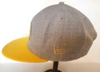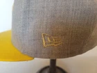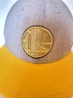 New Era 9Fifty one size adjustable Golden State Warriors NBA licensed cap. Snapback and brim in yellow with gray cap. Golden embroidered team logo patch on front. "Warriors" embroidered on one side. NBA logo patch on back. 5 panel design. Nice clean condition.