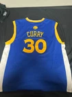 Show your love for the Golden State Warriors and Steph Curry with this officially licensed Adidas jersey. The blue, sleeveless jersey features Steph Curry's #30 on the back and is perfect for any basketball fan. Made in Nicaragua, this jersey is available in a men's small size and is perfect for game day or adding to your collection of fan apparel. Get your hands on this must-have piece of basketball memorabilia today!