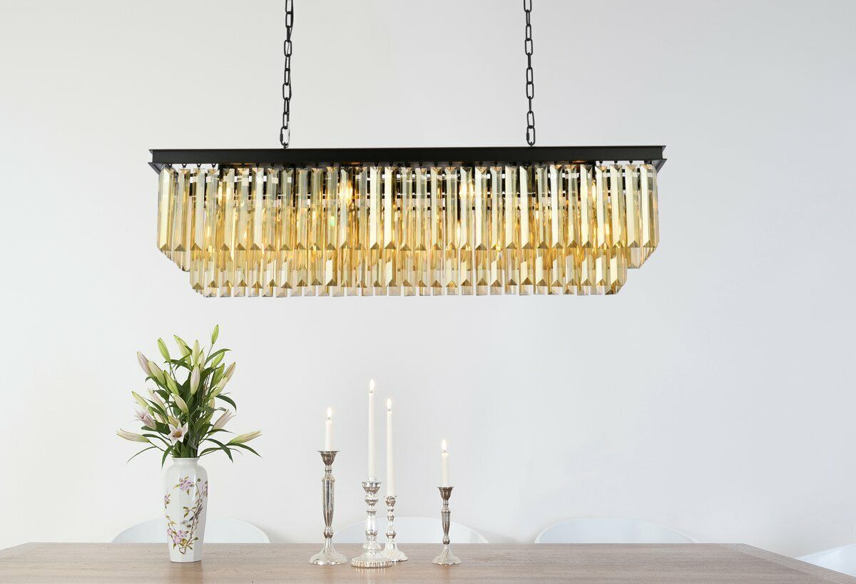 12 LIGHT QUALITY INCREDIBLE MATTE BLACK FRAME MODERN CONTEMPORARY STYLE GOLDEN TEAK CRYSTAL CHANDELIER. Dining Room, Living Room, Bedroom, Hallway, Foyer and Kitchen. L: 50" x D: 14" x H: 18" . Elegant Lighting 1232D50MB-GT/RC Sydney 12 Light 50 inch MATTE BLACK Pendant Ceiling Light in Golden Teak. 1232 Sydney Collection Chandelier L: 50" x D:14" x H:18" Lt:12 MATTE BLACK Finish (Glass: Golden Teak (Smoky) Crystals) Brand Information Brand: Elegant Lighting Collection: Sydney SKU: 1232D50MB-GT/RC UPC: 842814114999 Dimensions and Weight Length: 50.00 in. Width: 14.00 in. Height: 18.00 in. Max Height: 78.00 in. Back plate/Canopy Width: 4.75 in. Back plate/Canopy Length: 35.50 in. Back plate/Canopy Thickness: 1.10 in. Weight: 105.40 lb. Other Specifications Ships Via: Ground ( FREE SHIPPING ) Included Suspension: 60in. of Chain Included Lead Wire: 141.73 Warranty: Limited 1 year on finish and frame. Design Information Category: CHANDELIERS Finish: MATTE BLACK Crystal: Royal Cut Glass: Golden Teak (Smoky) Crystals Bulb Information Bulbs Included: No Primary Bulb(s): 12 x 40 watts E12 Product Rating Voltage: 110V-125V Safety Rating: ETL and ETLC MORE ITEM DETAILS: #1. THIS CHANDELIER IS 110V-125V. CHECK WITH YOUR INSTALLER IF YOU ARE BUYING OR SHIPPING THE CHANDELIER TO A COUNTRY OUTSIDE THE USA IF VOLTAGE IS COMPATIBLE. #2. LIGHT BULBS ARE NOT INCLUDED. #3 NO RETURNS ACCEPTED WITHOUT THE ORIGINAL PACKING! WE STRIVE TO MAKE SURE EVERY ORDER IS ACCURATE AND THAT EVERY CUSTOMER IS 100% SATISFIED. IN THE EVENT YOU ARE UNHAPPY WITH YOUR PURCHASE, WE OFFER A GENEROUS HASSLE FREE 30-DAY RETURN POLICY FOR EVERY ITEM WE SALE. YOUR SATISFACTION IS OUR TOP PRIORITY! ALL RETURNED ITEMS MUST BE SENT BACK TO US USING THE ORIGINAL SHIPPING BOXES AND PACKING MATERIALS!