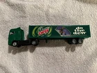 Golden Wheel Semi Trailer Mountain Dew Pepsi Co Soda Hauler Tractor Used Condition - Some wear and Scratches 2 Broken Pegs, one for the trailer stand and the one that attaches to the truck.