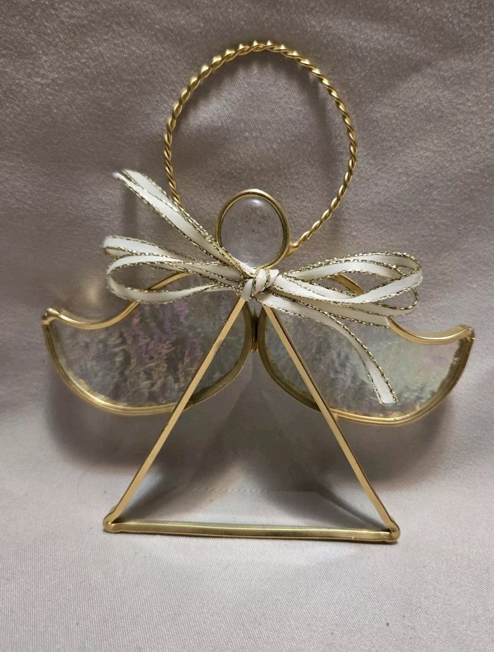 Goldtone Metal w Glass ANGEL Ornament. Condition is Used. Shipped with USPS Ground Advantage.