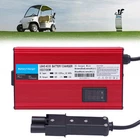 Golf Cart Battery Charger 48 Volt 12 Amp Barrel 2 Pin Plug Trickle Charging Mode 48 Volt 12Amp Golf Cart Charger "Barrel" 2 Pin Style Plug Description This golf cart charger features high-quality aluminum alloy housing that is not only robust but also provides good heat dissipation. It has multiple intelligent safety protections designed for a stable and safe operation. It also features a trickle charge mode which helps to extend battery life and improve performance. This golf cart charger will provide a great solution for charging your lead acid batteries. Key Features Strong and Durable: The housing is made of aluminum alloy, which is solid, wear-resistant, pressure-resistant, rust-proof, and impact-resistant, effectively protecting the internal components and extending its service life Good Heat Dissipation: The built-in cooling fan and multiple cooling holes on the body provide good heat dissipation, ensuring stable performance for a fuller charge. Easy to Carry: Its compact size(8*4.7*2.8in) and lightweight (4.8lbs) make it easy to take anywhere for charging. Energy-saving: With a conversion rate of 85%, this battery charger can achieve efficient charging to save you lots of electricity. Safety Protection: It is equipped with short-circuit protection, over-current protection, over-voltage protection, surge protection, over-temperature protection (when reaching 75°C), and an anti-reverse connection function, ensuring that the charger is fully protected during use. At the same time, it automatically cuts off when fully charged to prevent the product from being overcharged. Three-Stage Charging: It adopts a three-stage charging mode - constant current, constant voltage, trickle (or floating charge), which can accurately control the current and output voltage of the charger according to the battery condition. And the same time, when the battery is about to be fully charged, the charger will switch to the floating charge mode, providing a small floating charge current (3A) to protect the battery. Excellent Performance : It uses a pure copper high-frequency transformer with the advantages of safety, high capacity, stable output voltage, and long full-load operation, which provides excellent charging performance and efficiency. Customer Service: We aim to provide quality products and services. If you have any problems, please feel free to contact us. We will reply and solv e the problem for you as soon as possible. Details Indicator Light and Display: It is equipped with two LED indicators and a display. Among them, LED1 indicates the power on condition, and LED2 will display the charging state (red indicates the charging state, and green indicates full charge or standby). The display can display voltage and current so that you can clearly understand its working state. Extended Power Cable: It is equipped with an extended input power cable(1.5m/4.9ft) and output power cable(1m/3.28ft) to provide a longer distance of use. Application It is suitable for lead acid batteries of >60AH 48V. It is suitable for golf carts, electric motorbikes, electric forklifts, electric cleaning trolleys, golf carts, balance carts, electric floor scrubbers and electric equipment assembly lines. Specifications Material: Aluminum Alloy Color: Red Plug: US Standard Shape: Rectangular Power: 700W Over-temperature Protection: 75°C Conversion Efficiency: 85% AC Input Voltage: 110V 60Hz DC Output Voltage: 58.8V Output Current: 12A Floating Charge Current: 3A Applicable Battery: Lead Acid >60AH, 48V Input Power Cord Length: 1.5m/4.9ft Output Power Cord Length: 1m/3.28ft Packing Size: 34*23*11cm/13.38*9.05*4.33in Product Size: 20.5*15*7cm/8.07*5.9*2.75in Gross Weight: 2.4kg/5.29lbsNet Weight: 2.2kg/4.8lbs Package Included 1* Golf Cart Charger 1* Power Cable 1* English Use Manual Note 1. Please note that this charger is only suitable for lead acid batteries of >60AH 48V! 2. The charging time depends on the battery capacity of the lead-acid battery. 3. Please pay attention to the high voltage and danger in the charger. Non-professiona l maintenance personnel are not allowed to open the charger by themselves. Keep away from children and do not leave the battery unattended during charging. 4. Be sure to check the polarity of the connector/cable before connecting it to the battery pack. 5. When charging, please connect the charger output plug to the charging interface of the battery pack, and reverse connection is strictly prohibited; Then connect the charger power plug to the indoor power supply. After the battery is fully charged, first unplug the charger power plug, and then unplug the charger output plug. 6. During charging, the charger and battery shall be used in an indoor environment with good ventilation and heat dissipation. It is strictly prohibited to use them in a humid, high temperature, direct sunlight, and flammable and explosive gas environment. 7. Please do not block the air inlet and outlet or cover the charger. At least 10cm/3.93in of space shall be reserved at the air inlet side and air outlet side. 8. Please read the operating manual completely before use. And pay particular attention to the safety instructions included. 9. Please allow the slight color difference caused by the shooting l ight and 1-3cm error due to manual measurement, and make sure you do not mind before you order. Payment Delivery details Terms of sales About us Contact us Payment We accept ebay payment 。 Fees such as import duties, taxes are not included in the item price or shipping costs. These charges are the buyer's responsibility. Delivery details Shipping: 2-9 working days to: USA Terms of sales We maintain high standards of excellence and strive for hundred percent customer satisfaction. Feedback is very important to us. We hope that you contact us immediately before you give neutral or negative feedback, so that we can address your concerns. It is impossible to address issues if we do not know about them! About us Your sati