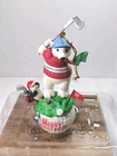 Adorable vintage Christmas tree ornament polar bear and penguin friends golfing together pre-owned but in good condition no cracks no chips