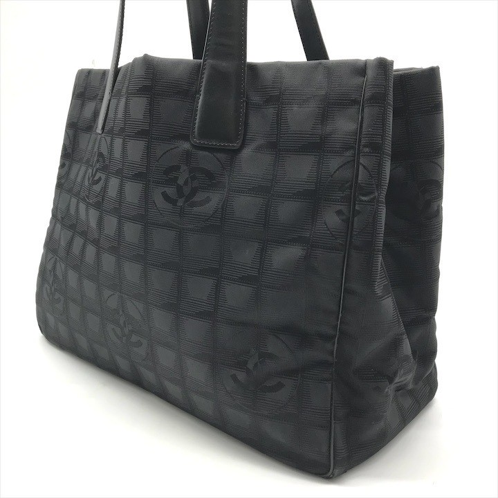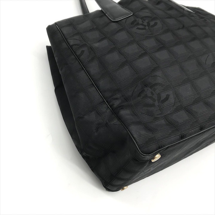 Good Condition CHANEL Coco Mark New Travel Line Nylon Canvas Tote Bag Black db3