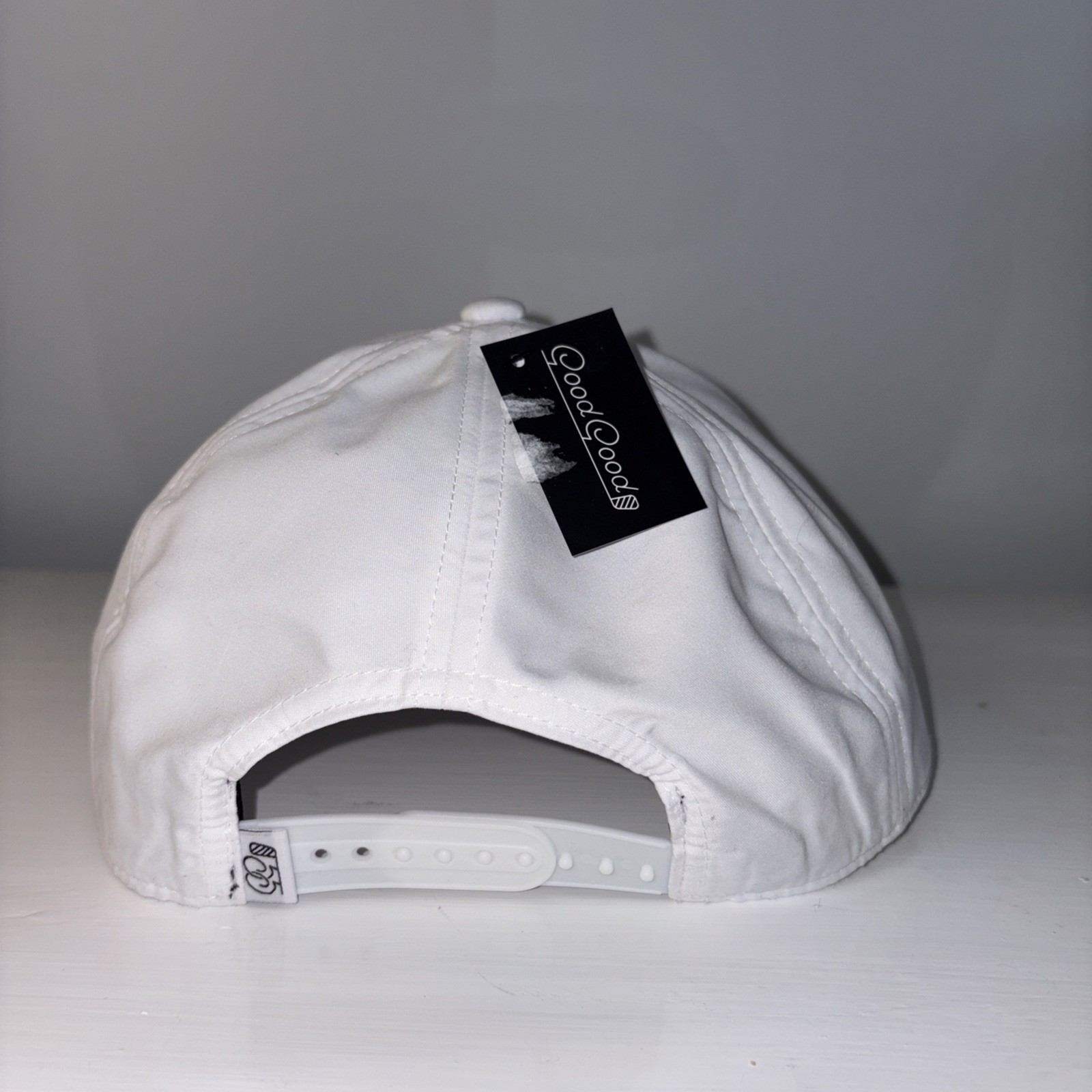 The Good Good Golf Hat Snapback is a stylish and versatile accessory for men. This white snapback features a solid pattern, adjustable sizing, and is perfect for casual occasions during the spring and summer seasons. Signed by the brand Good Good Golf, this hat is a must-have for any casual dresser looking to add a touch of sporty flair to their wardrobe.