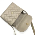Good condition CHANEL Coco Mark Matelass Turn Lock Lambskin Shoulder Bag Gray k3