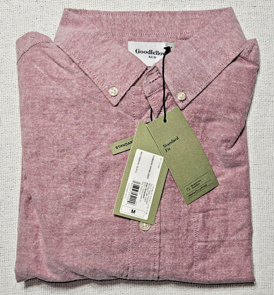 The GoodFellow Stretch Button Down Oxford Shirt in Red Ribbon color is a versatile piece for men's clothing. With a classic button-up style and a stretch fabric that offers comfort and flexibility, this shirt is perfect for various occasions such as casual outings, formal events, and even workwear. The shirt features a collared neckline, long sleeves, and a curved lower hem for a touch of sophistication. Made with a blend of spandex and cotton, this shirt is machine washable and easy to care for. Ideal for all seasons, this shirt is a wardrobe staple for any dapper man.