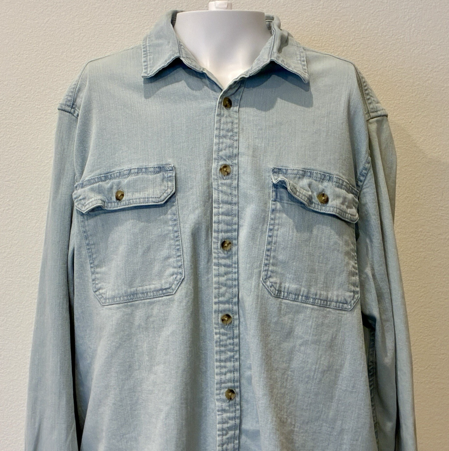 Goodfellow & Co. Mens Standard Button-Up Denim Shirt XL Long Sleeve Blue Classic. Please see pictures for measurements. This is a previously owned and used item. It may have signs of wear and previous use. Features: • Style Profile: Western, Cowboy, Classic, Work, • Button Up, Spread Collar, 2 Button Down Collars • Machine Washable • Chest: 50 in • Length: 31 in Measurements: - Previous washings may change the sizing written on the tag. - Please refer to the photos above for all measurements. - Please compare our measurements to that of one of your favorite garments. - Please note, item measurements are approximate. - Colors may differ slightly in shade from photos to actual item due variances caused by photography lighting and monitors. All items are bagged and sealed after being photographed, then stored in a smoke free environment to ensure the item is exactly the same as when photographed. We always carefully package and ship ASAP. Feel free to contact us with any questions. All pre-owned items are washed per eBay standards and policies. We greatly appreciate your business! Please remember to leave positive feedback if you are happy with your purchase! Thanks for looking!