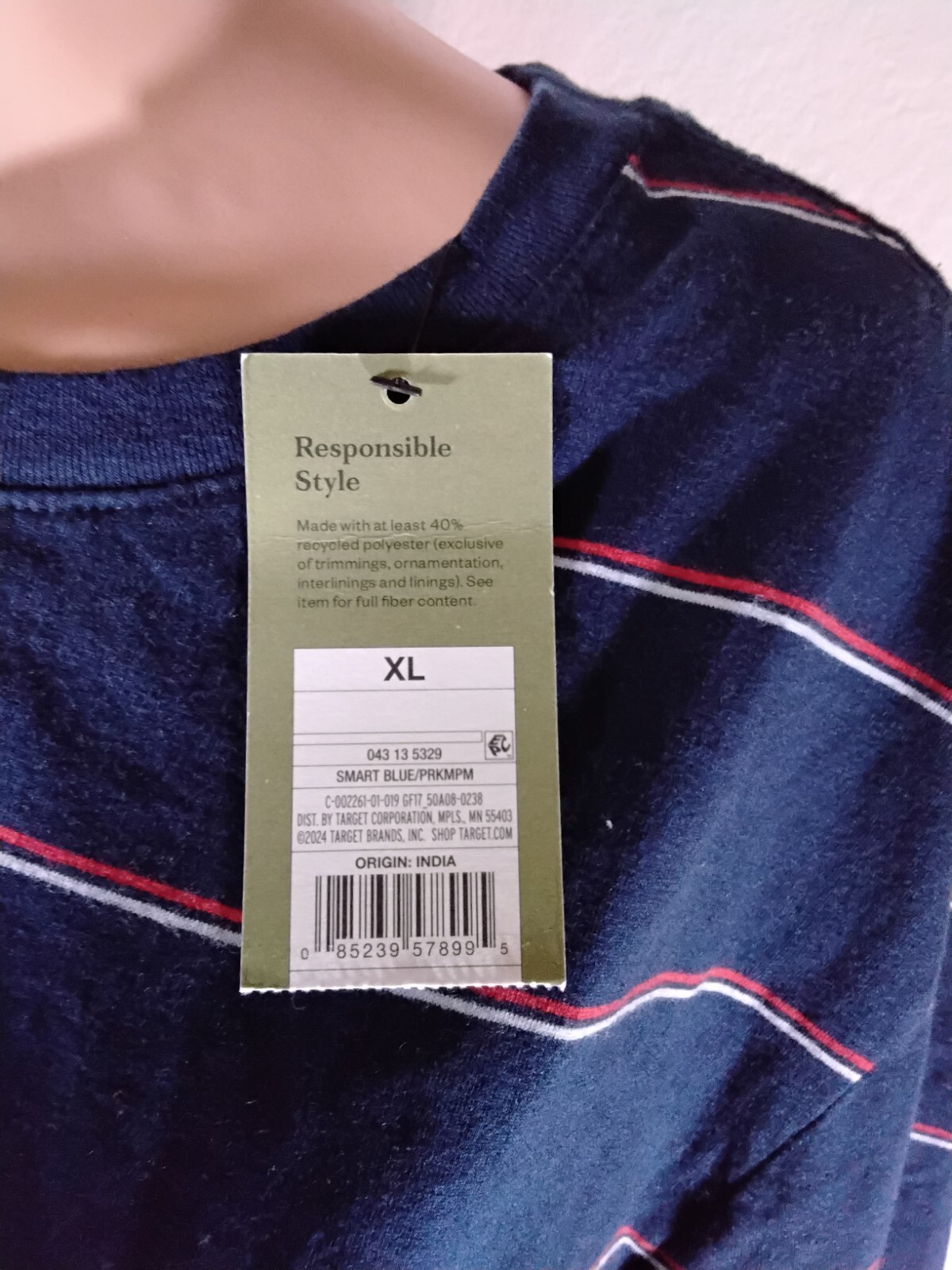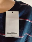 Elevate your casual wardrobe with the Goodfellow & Co Men's Navy Striped Short Sleeve Crew Neck T-Shirt. This patriotic T-shirt features red and white stripes that add a touch of American flag to your look. It is made of a comfortable midweight knit fabric consisting of 60% cotton and 40% polyester, making it ideal for regular wear during summer and spring. The T-shirt has a crew neckline and short sleeves with flat seams for added comfort. It is machine washable and has a unit quantity of one. This T-shirt is perfect for Labor Day, Memorial Day, and the 4th of July. Get your hands on this PRKMPM model T-shirt from India, which is available in size XL and fits regular.