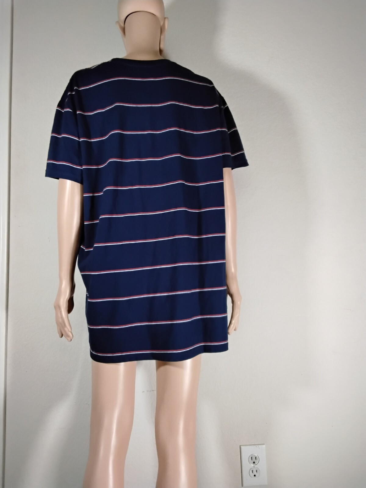 Love this shirt! The fit is perfect for an XL, and the fabric is so soft yet durable. The navy with red and white stripes gives a cool, patriotic vibe without being over the top. It’s lightweight but holds up well after washes—no shrinking or fading. Great for casual outings or layering. Super comfy and stylish!