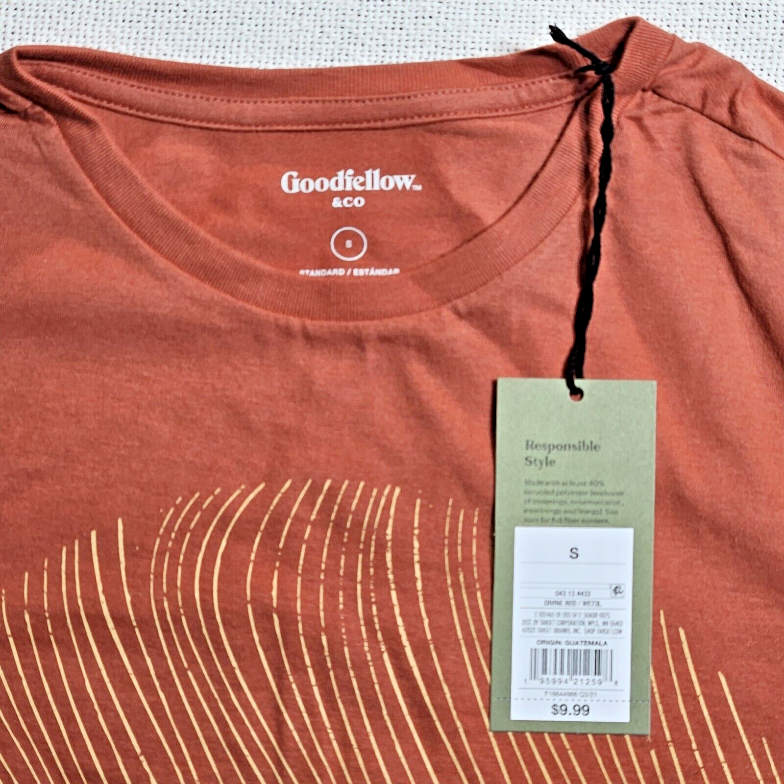 The Goodfellow Co 3Pack T-Shirt in Divine Red with Sunrise is a set of three men's small shirts featuring a crew neck and short sleeves. Made from a blend of polyester and cotton, these knit shirts are easy to care for and breathable, making them suitable for all seasons. The graphic print design of a sunrise adds a stylish touch to the regular fit shirts, perfect for everyday wear. The versatile red color and sporty theme make these shirts a great addition to any man's wardrobe, offering both comfort and style.