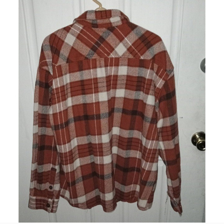 Upgrade your wardrobe with this Goodfellow & Co button-up shirt in a stylish burnt orange plaid pattern. Made of heavyweight cotton material, this shirt is perfect for outdoor activities and casual occasions. It features a spread collar neckline, long sleeves, and a regular fit for maximum comfort and style. The shirt comes in size XL and is suitable for men of all ages. Its features include a plaid pattern, long sleeves, button-up design, and a spread collar neckline. The shirt is perfect for any casual occasion and can be paired with jeans or chinos for a complete look. Get your hands on this Goodfellow & Co shirt today to add some style to your wardrobe. Emm272