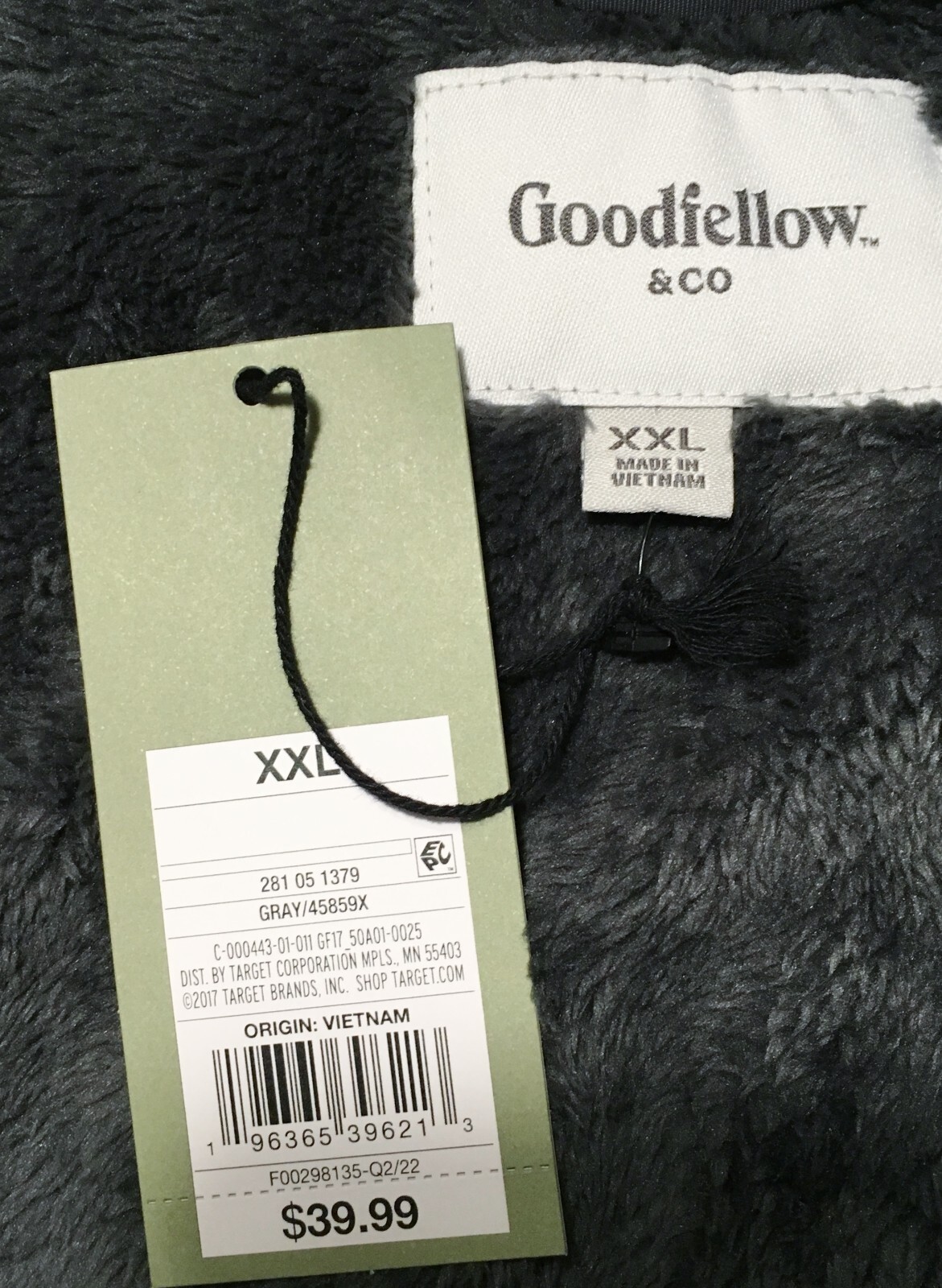 GOODFELLOW & CO. NEW WITH TAGS THICK HIGH PILE FLEECE JACKET FAUX FUR MENS XXL SNAP BUTTONS GRAY POLYESTER MEASUREMENTS: 28 INCH (PIT TO PIT) 30 INCH LENGTH (SHOULDER TO BOTTOM HEM) 27 INCH SLEEVES (SHOULDER SEAM TO END) VIEW ALL OF THE PICTURES! *************************************************************** *We specialize in providing our Customers with High End, Brand Name Designer Clothing at an Affordable Cost....regardless of whether it's brand new or pre-owned. Our goal is for customer satisfaction!! If you have any questions or concerns feel free to reach out and contact us! 6