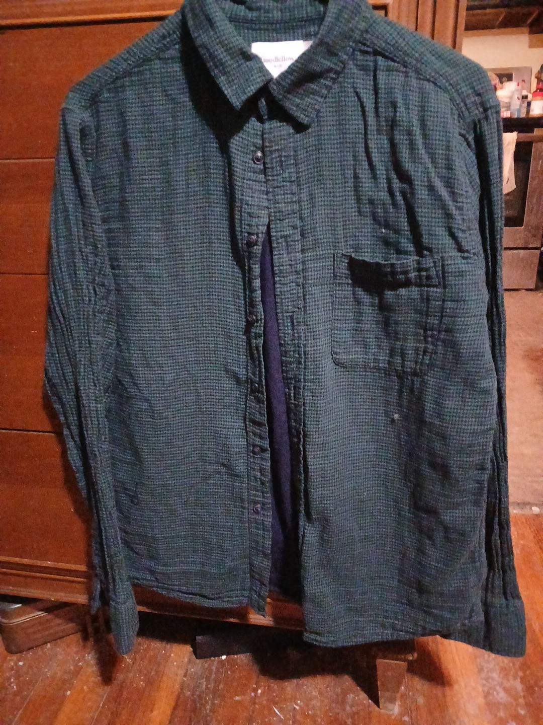Crafted for the modern man who appreciates a classic touch, this Goodfellow & Co. plaid button-up shirt is a versatile addition to any wardrobe. The shirt comes in a medium size with a tailored fit that's just right for casual outings or travel adventures. It features a sharp collared neckline with a point collar style that adds a hint of sophistication to your look. The shirt's flannel fabric type ensures comfort and warmth across all seasons, making it an essential piece that you can reach for year-round. Its lightweight construction, combined with practical features like easy machine washability and convenient pockets, makes it an effortlessly stylish choice for any occasion. Whether you're out on a chilly fall day or enjoying a summer evening, this shirt's timeless design and durable cotton blend material will keep you looking sharp and feeling comfortable.